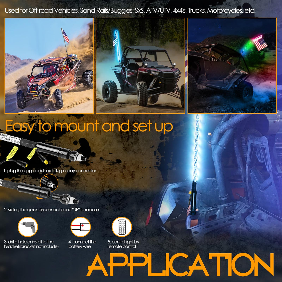 Nirider 3Ft Led Whip Lights With Flag Pole Remote Control Spiral Rgb Chase Light Offroad Warning Lighted Antenna Led Whips For U