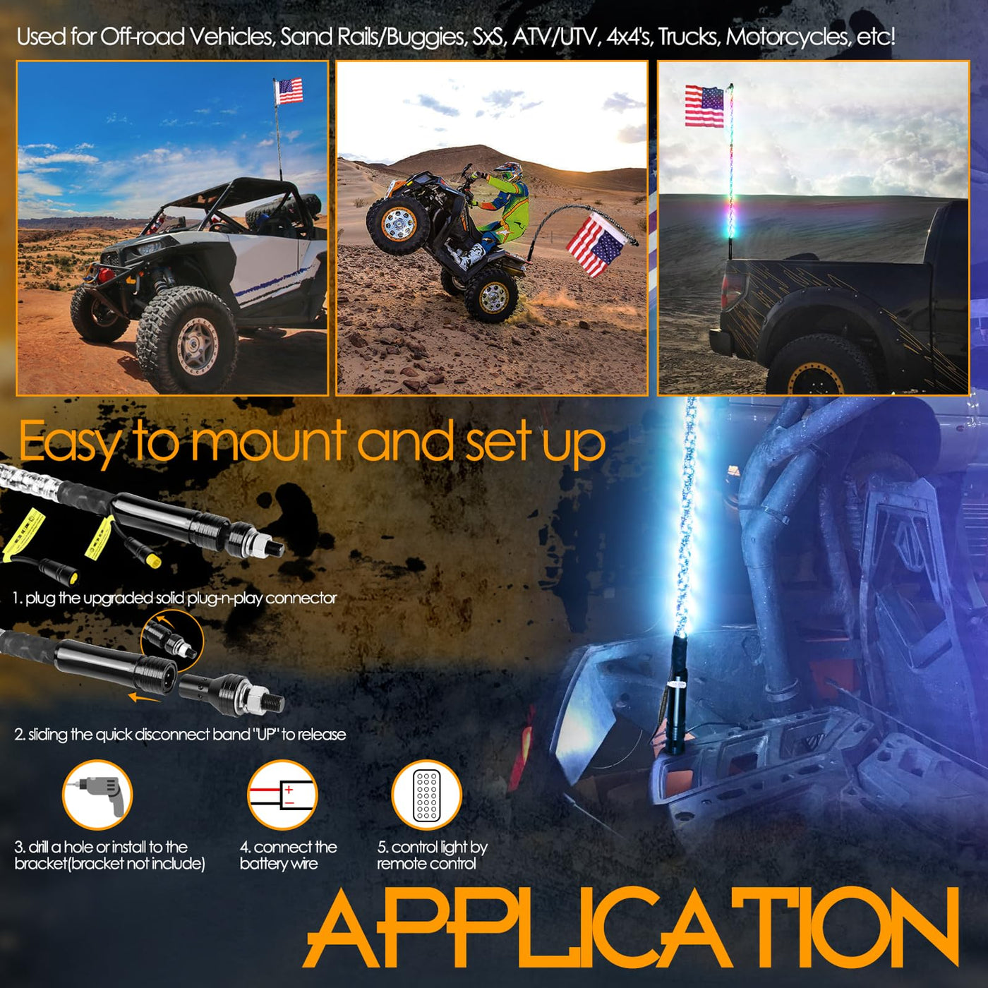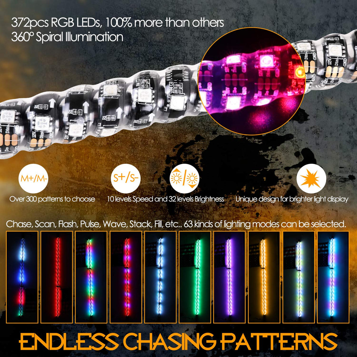 Nirider 5Ft Led Whip Light With Flag Pole Remote Control Spiral Rgb Chase Light Offroad Warning Lighted Antenna Led Whips For Ut