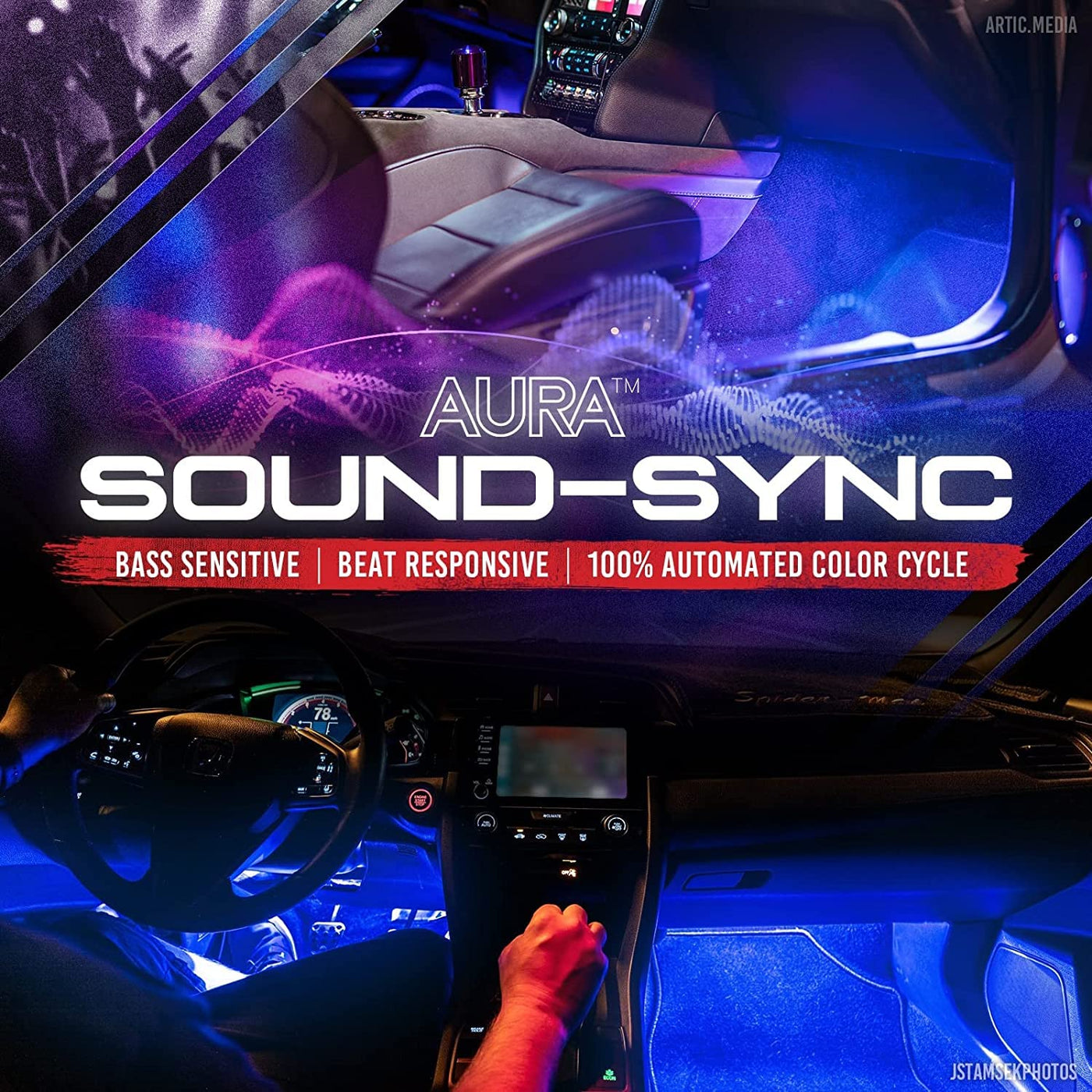 Opt7 Aura Double Row Car Led Lights Interior 6Pc With Wireless Remote Control, Multicolor Mode, Sound Active Function Inside Amb