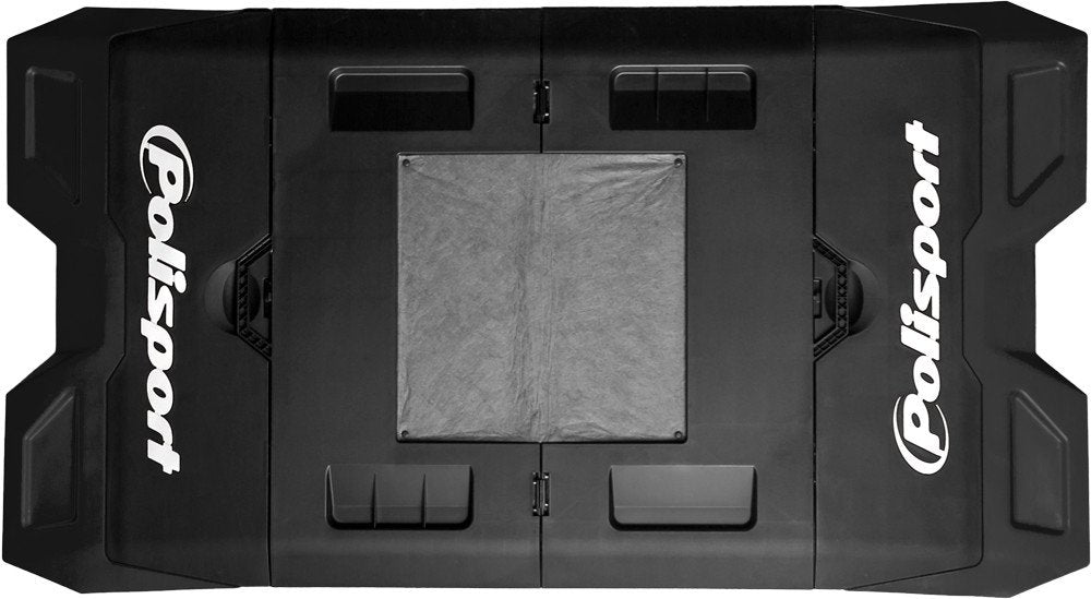 Q: What are the dimensions of the Polisport Motopad when unfolded?A: When unfolded, the dimensions of the Polisport Motopad are 70.87 inches by 38.98 inches, providing ample space for working on your bike.