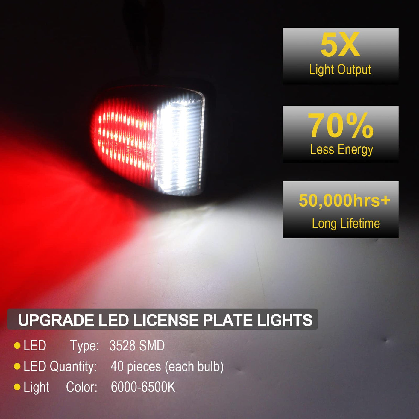 R&F Auto 6000K Led Red Tube License Plate Light Compatible With Silverado & Sierra 1500 2500 3500 Hd/Avalanche/Tahoe/Suburban/Tr