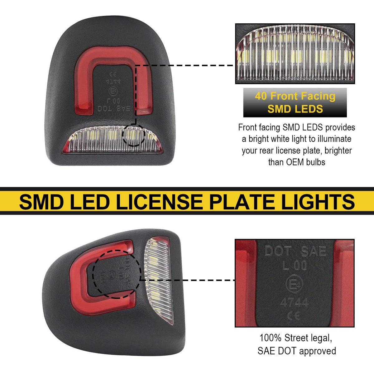 Red U-shaped LED License Plate Lights Compatible with Silverado & Sierra 1500 2500 3500 HD/Avalanche/Tahoe/Suburban/Traverse/Yukon/Yukon XL/Escalade & ESV/EXT