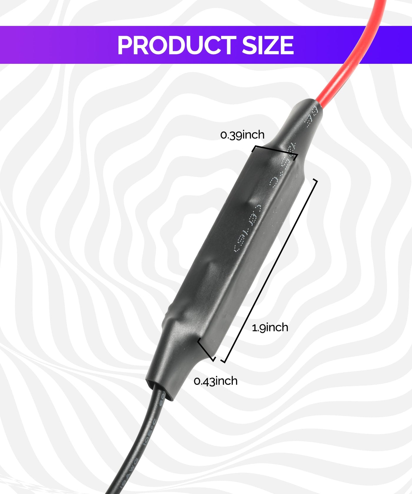 Input voltage: DC12V< br > Power: 10W< br > Size: 2.4 * 0.5 * 0.4in< br > Wire length: 5.3in< br > Current: 1.1 (A)< br > < br > What will you get in the box?< br > -4 x Motorcycle Resistor< br > < br > Our product advantages: < br > -Made of high-quality power cords and pure copper terminals, durable and suitable for long-term use< br > -Helps solve turn signal issues related to LEDs, such as excessive flashing, no flashing, or bulb burn out indications< br > -It can effectively solve the working problems of the new LED turn signal lights< br > -Suitable for any vehicle, suitable for LED indicator lights/flashing lights/turn signals< br >