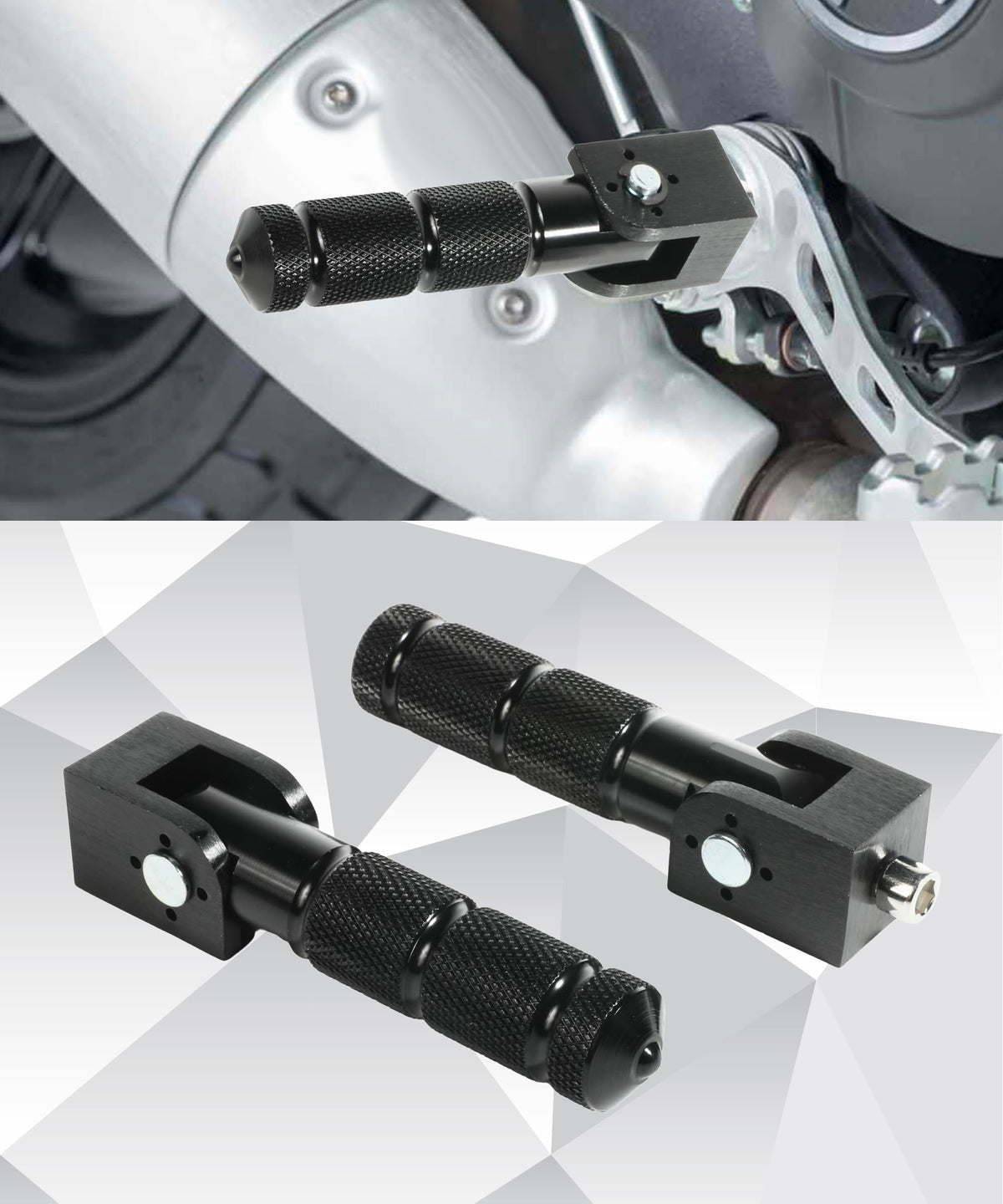 Q: How does the anti-slip design enhance safety?A: The knurled anti-slip design of the RACOONA foot pegs provides passengers with a secure grip, enhancing safety and comfort during rides, even on uneven terrain.