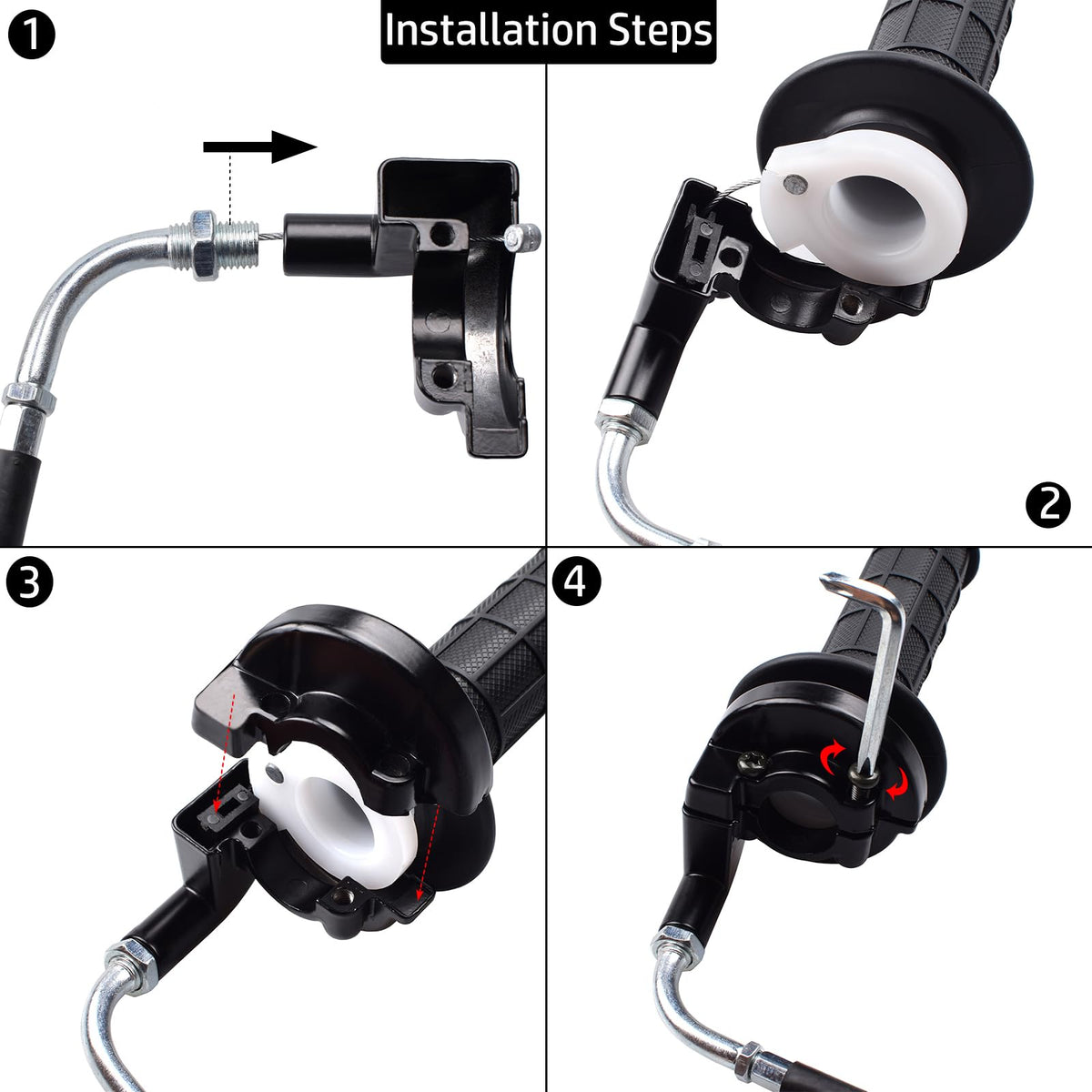 Q: Is the installation of the throttle grips and cable easy?A: Yes, the installation of the Royitay Twist Throttle Handle Grips, throttle cable, and throttle clamp is designed to be easy and user-friendly. They can be used in almost any bike application, making them a convenient replacement option.