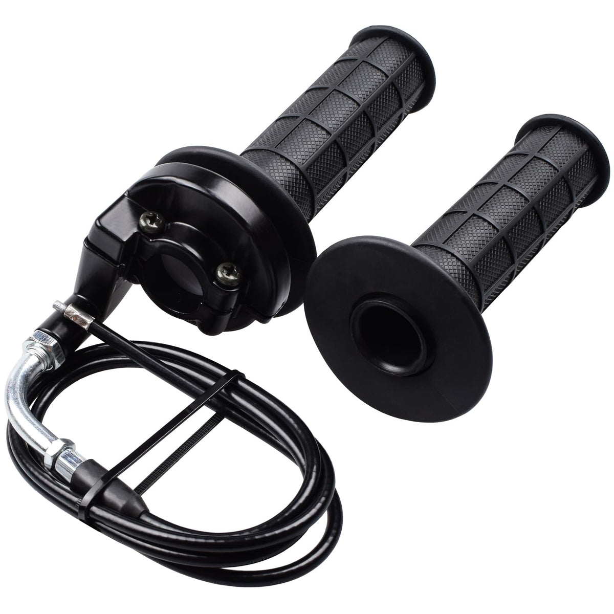 Q: How long is the throttle cable included in this set?A: The throttle cable included in the Royitay Twist Throttle Handle Grips set is approximately 122cm (48 inches) long, which is suitable for most bike applications.