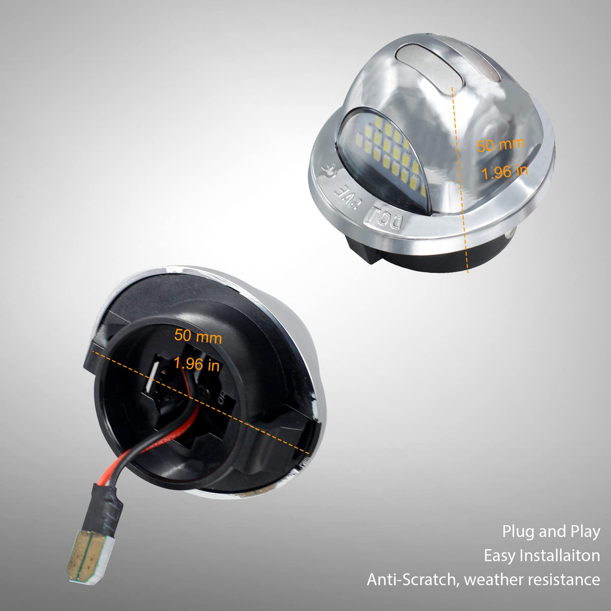Fitment:Compatible With 2006-2008 Lincoln Mark Lt 1985-1996 Ford Bronco 1984-1990 Bronco Ii 2000-2005 Excursion 1997-2002 Expedition 1991-2004 Explorer 2001-2010 Explorer Sport Trac 1992-1997 F Super Duty 1984-2014 F150 2004 F150 Heritage 1984-1999 F250 1997 F250 Hd 1999-2016 F250 Super Duty 1987-1997 F350 1999-2016 F350 Super Duty 1999-2016 F450 Super Duty 1999-2016 F550 Super Duty 1985-2011Ranger | Brighter Than Stock Bulbs: Built-In High Power 18 Smd Led Chips And 32Smd Red Oled Neon , Super Bright White Light Output Maximize Rear End Visibility, Easy To Read Your Plate At Night, It 'S Best Replacement For The Old Or Burnt Out Factory License Plate Lights | Upgraded Version And Waterproof: This Upgrated Tag Lights With 3-Row Red Oled Strips Enhance Safety At Night And Make Your Vehicle More Modern.Made Of High Quality Chrome And Abs Plastic, Have Passed Waterproof Test, No Moisture After Heavy Rain Or Car Wash | Easy To Install: Plug And Play, Exact Fit And Direct Replacement, No Modification Or Trimming Needed, Just Take Out Your Original Bulbs And Plug New Lamps, Don 'T Need To Worry About Connections | Package Including: 2 X Led License Plate Lights.