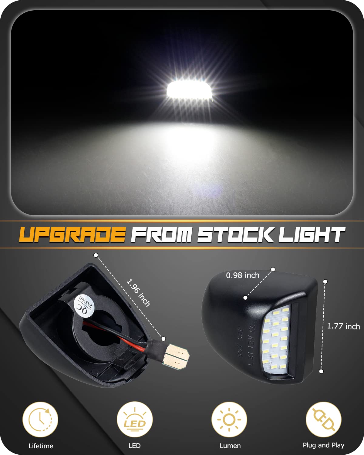 Fitment:Compatible With 1999-2013 Chevy Silverado/Gmc Sierra 1500 2007 Silverado/Sierra 1500 Classic 2001-2003 2005-2006 Silverado/Sierra 1500 Hd 2007 Silverado/Sierra 1500 Hd Classic 1999-2004 Silverado/Sierra 2500 2001-2014 Silverado/Sierra 2500 Hd 2007 Silverado/Sierra 2500 Hd Classic 2001-2006 Silverado/Sierra 3500 2007 Silverado/Sierra 3500 Classic 2007-2014 Silverado/Sierra 3500 Hd | Brighter Than Stock Bulbs: Our License Plate Light Built-In High Power 18 Smd Led Chips, Super Bright 6000K White Light Output Illuminates License Effectively, Easy To Read Your Plate At Night. With Canbus Control Unit, No Error Code, A Best Replacement For Oem Number Plate Light | Waterproof Design: Tag Light Made Of High Quality Pc/Abs Plastic Lens And Housing Processed With Ultrasonic Treatment, Anti-Scratch, No Faded With Long-Time Exposure And Can Adapt To All Kind Of Extreme Weather, No Condensation Inside After A Heavy Rain Or Car Wash Anymore | Easy Installation: Plug And Play, Exact Fit And Direct Replacement, No Modification Or Trimming Needed, Just Take Out Your Original Bulbs And Insert New Plug Into Socket. Non-Polarity, No Need To Worry Positive And Negative Connections | Package Including: 2 X License Plate Lights With Sockets.