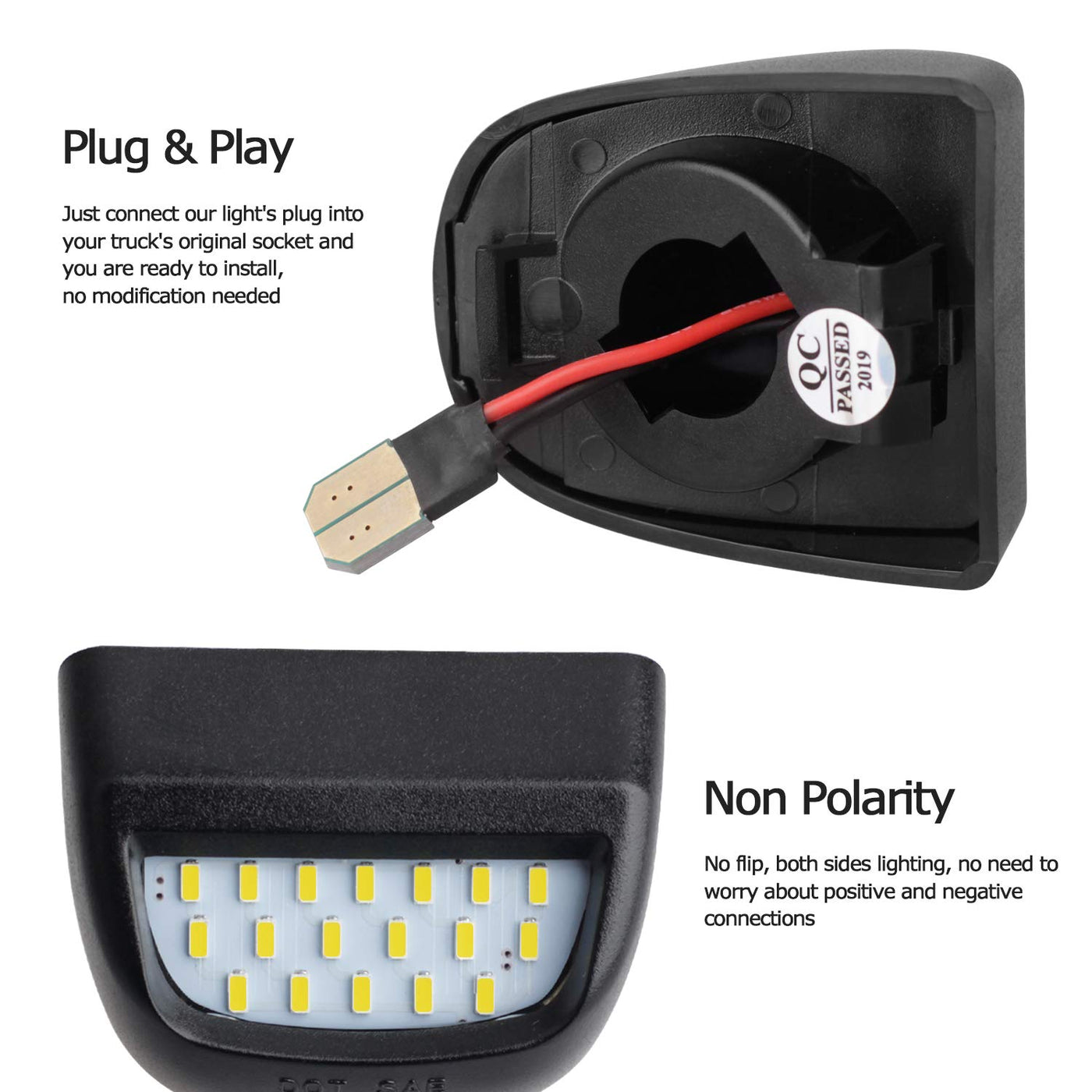 Package Includes: 2 X Led License Plate Lights And 1 Manual Compatibility Compatible With 1999-2013 Silverado 1500 Compatible With 1999-2004 Silverado 2500 Compatible With 2001-2007 Silverado 3500 Compatible With 1999-2013 Silverado 1500/2500Hd Compatible With 2007-2013 Silverado 3500Hd/Avalanche Compatible With 2000-2006 Suburban 1500 2500/Tahoe Compatible With 1999-2013 Gmc Sierra 1500 Compatible With 1999-2004 Gmc Sierra 2500 Compatible With 2001-2007 Gmc Sierra 3500 Compatible With 1999-2013 Gmc Sierra 1500/2500Hd Compatible With 2007-2013 Gmc Sierra 3500Hd Compatible With 2000-2006 Gmc Yukon Compatible With 2002-2013 Cadillac Escalade Ext Note: For All Of The Above Model With Step Bumper Feature: Lens Color: Transparent Led Color: Pure White Voltage: 12Vpower: 3W Material: Abs Plastic Housing, Pc Lens Plug And Play, Direct-Fit Replacement Non-Polarity, No Need To Flip Oem Replace Part Number 15049281, 15805196, 22794700