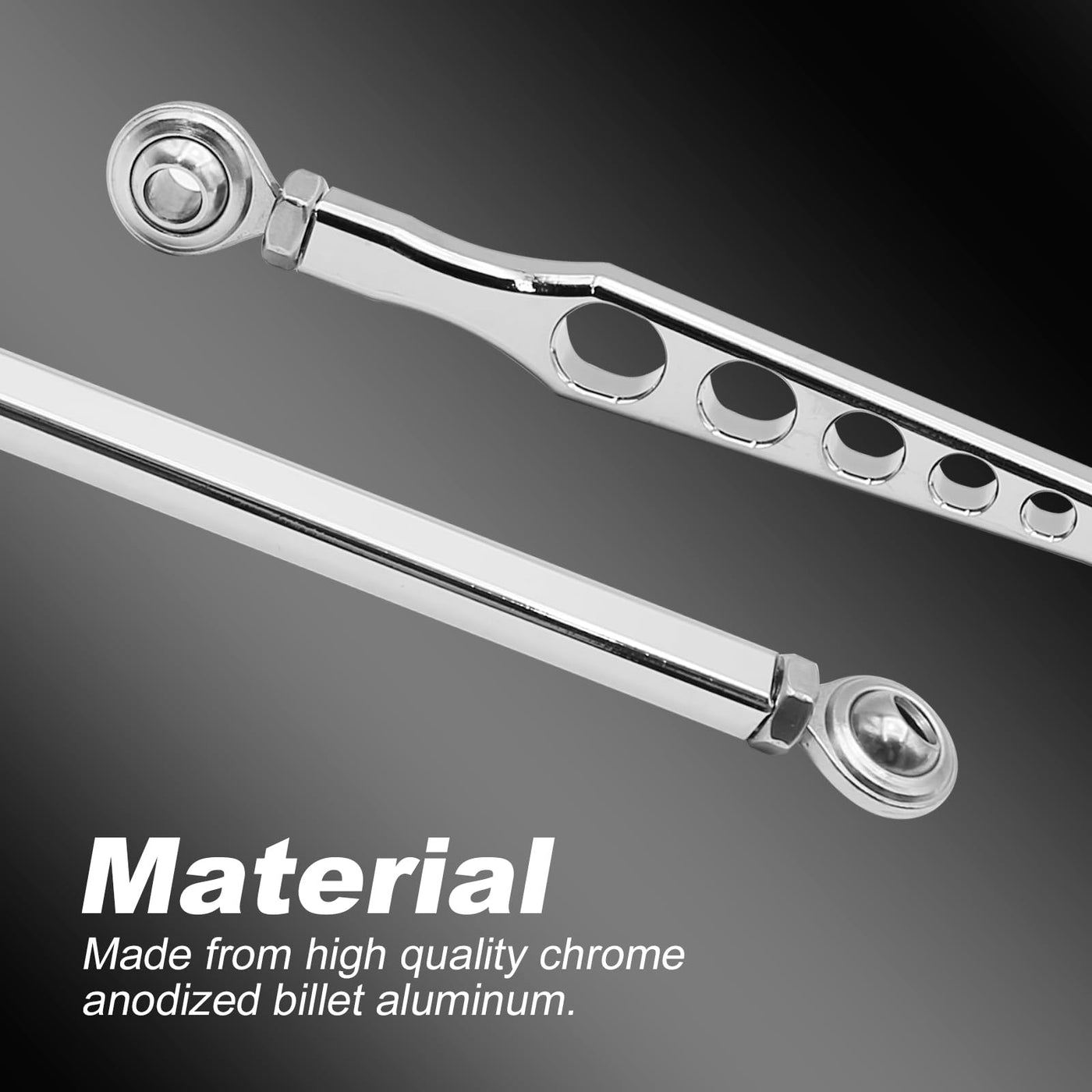 Q: What materials are used in the construction of this shift linkage?A: The Saihisday Sliver Gear Shift Linkage is made from high-quality chrome anodized billet aluminum, which not only enhances its durability but also provides a sleek, attractive look for your motorcycle.
