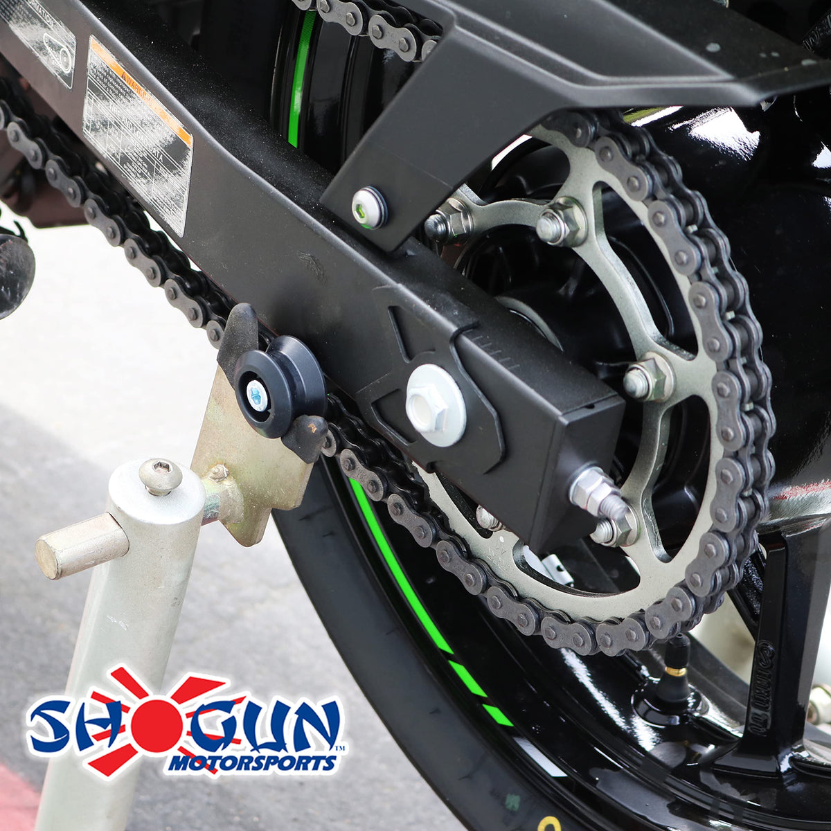 Shogun Usa Made Sliders & Spools Kaw Ninja 400 Z400 Z 400 2018 2019 2020 2021 2022 2023 2024 No Cut Black Frame Sliders With Swingarm Spools Fits Abs & Non Abs Models - 750-4159 & 701-0779