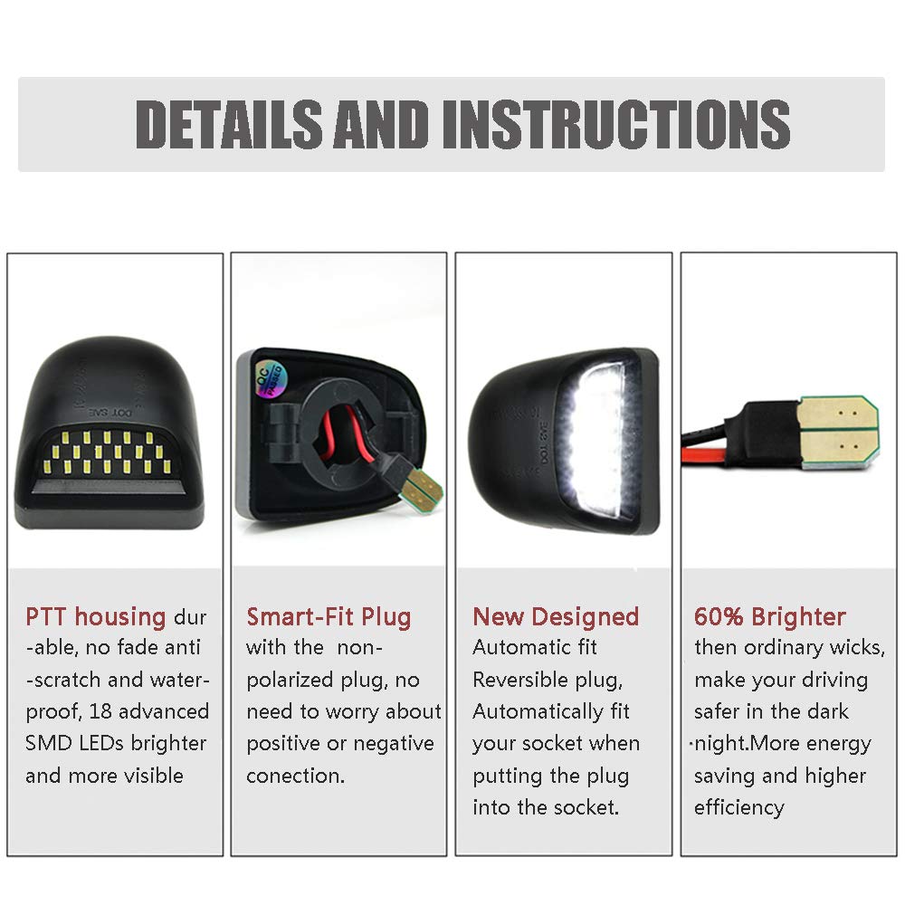kanuoc LED License Plate Light Tag Lamp Assembly Replacement for Chevy Silverado 1500 2500 3500 Suburban Tahoe GMC Sierra Yukon XL for Escalade, 6000K White, Pack of 2