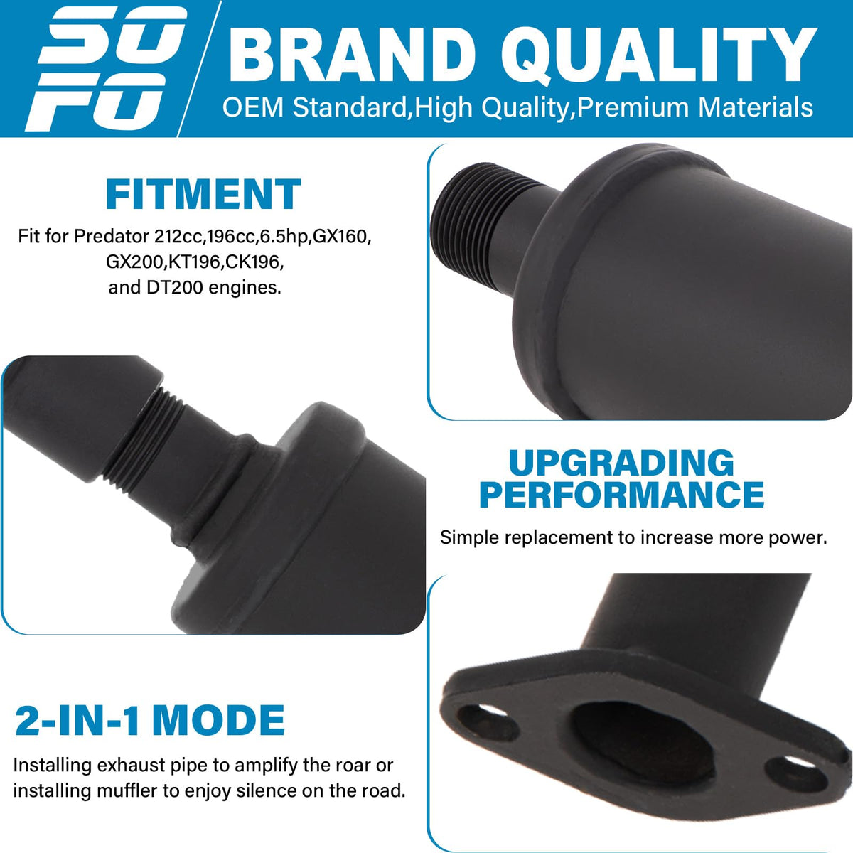SOFO Upgraded Exhaust Header Pipe Muffler for Predator 212cc 196cc 224cc 200cc Coleman CT200u BT200X B200R KT196 Baja MB200 Go K