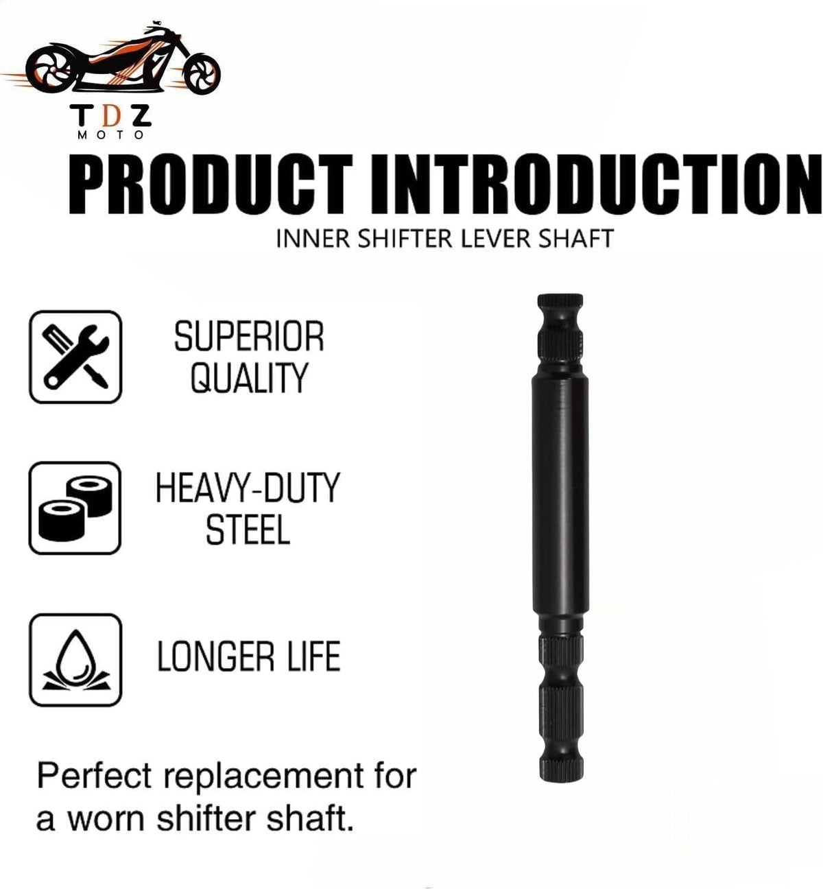 TDZ Black 2PC Steel Inner Shifter Lever Shaft Kit for 1984-2016 Touring Road Glide/Street Glide/Road King/Electra Glide/Tri Glid
