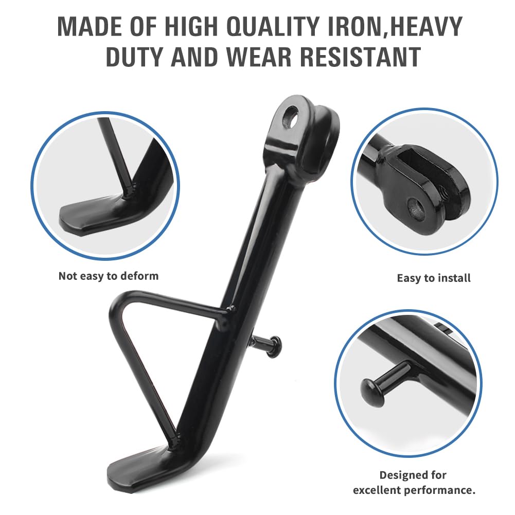 Premium Material: Constructed from high-quality iron, this heavy-duty kickstand is wear-resistant and designed to withstand the rigors of daily use without deforming.