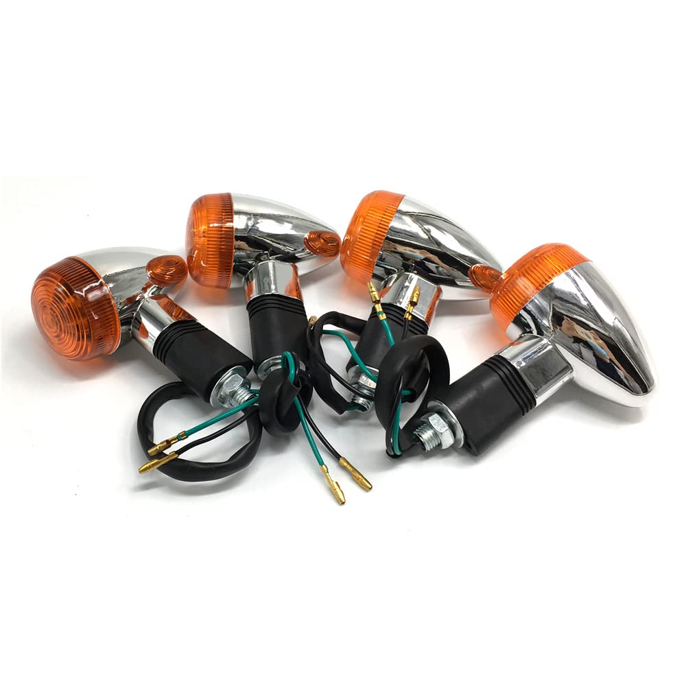 VRWEARE Universal 4pcs Motorcycle Turn Signals Chrome Bullet Front Rear Lights Compatible with Harley Honda Suzuki Yamaha Kawasa