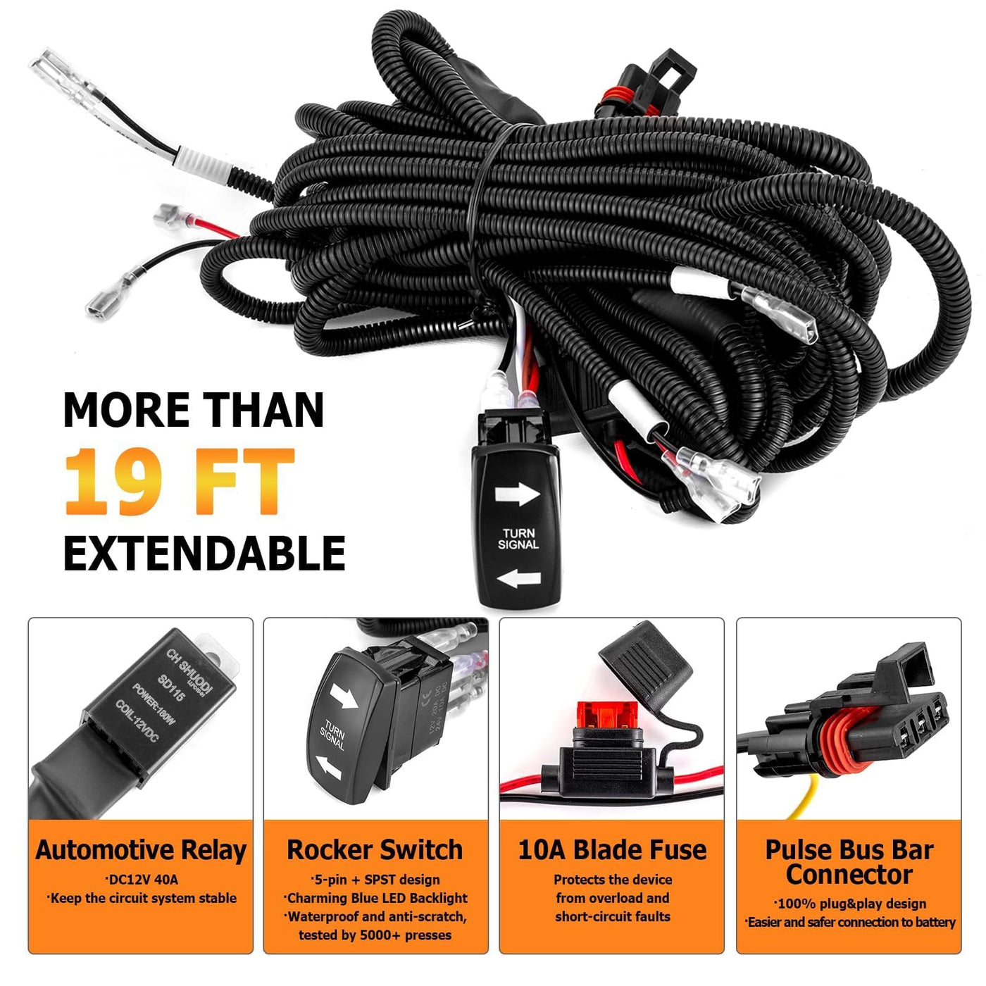 Specification: Logo: Turn Signal Backlight: Blue Type: 1 To 4 Wire Gauge: 20 Awg Input: 12V 20A & 24V 10A Dc Length: 19Ft Rocker Switch: 4-Pin Dpdt Relay: Dc 12V 40A