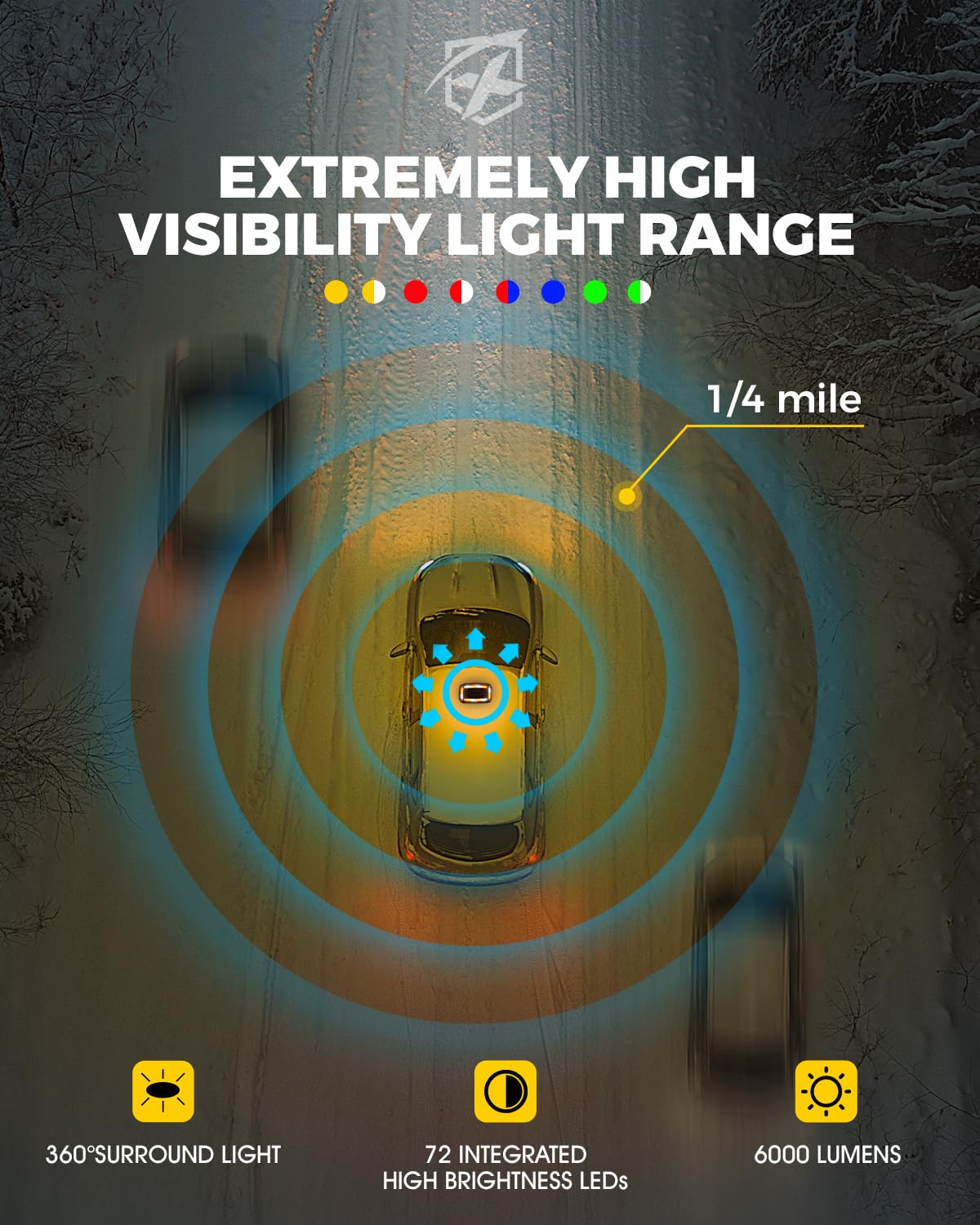 Xprite Upgraded 12 '' 72Led Rooftop Mini Strobe Lights, Emergency Safety Flashing Beacon Light Bar With Magnetic Base For 12V-24