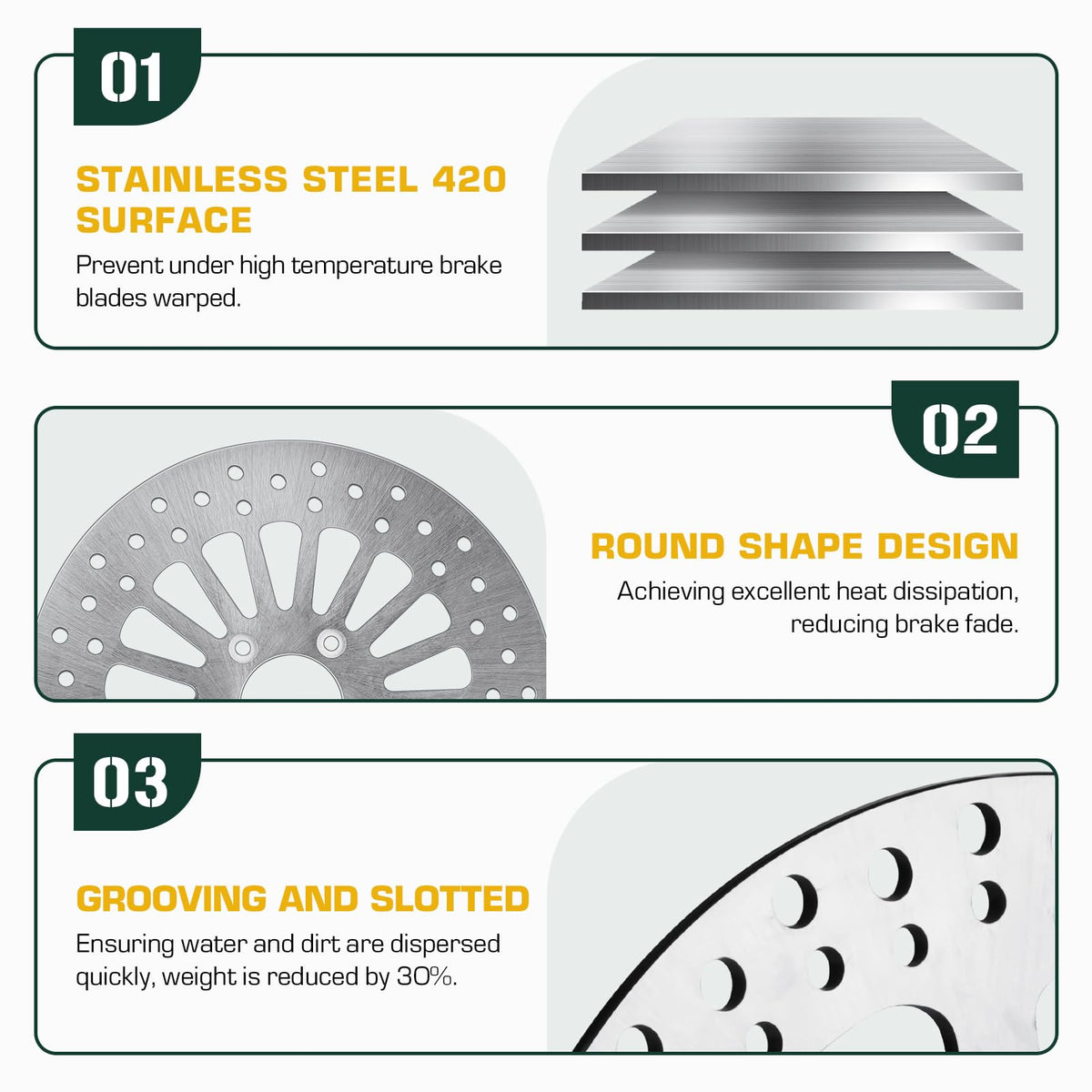 Youxmoto 2Pcs Front Brake Rotor 11.8' For Harley 2008-2020 Road King/Road Glide Electra/Street Glide/Tri Glide Ultra Classic (Flhr/Fltr/Flht/Flhx), Stainless Steel Sus 420 Brake Disc Rotor