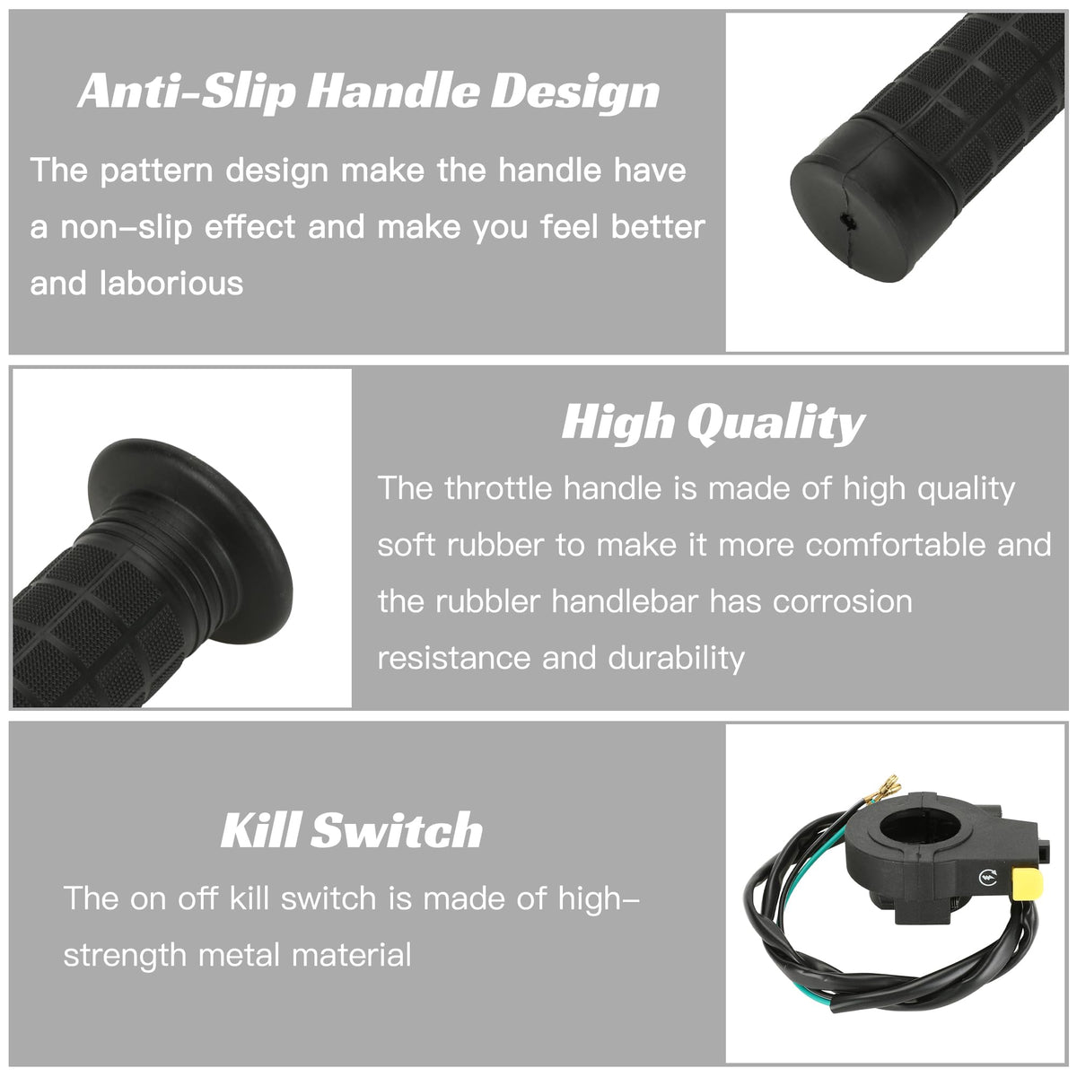 Specification: Yoxufa Product Name: 80Cc Motorized Bike Throttle Assembly Kit Packing List: 1 * Throttle Cable, 1 * Left And Right Handle Grip, 1 * Throttle Kill Switch,