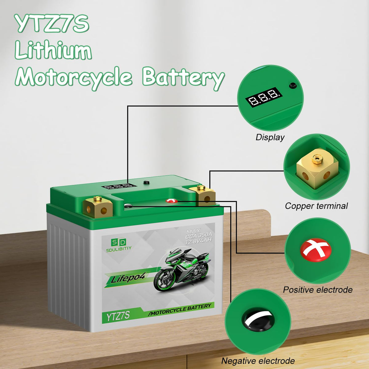 YTZ7S YTX5L-BS Lithium Motorcycle Battery LiFePO4 12V 4Ah 280-350CCA High Performance Power Sports, Compatible ATV, UTV, PWC, Se