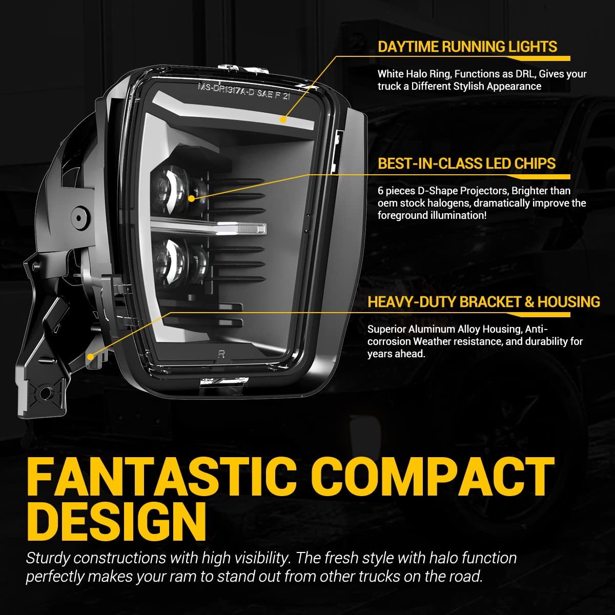 Z-Offroad Led Fog Lights W/White Drl Compatible With 2013-2018 Dodge Ram 1500 Bumper Driving Lamps Replacement Assembly Kit - Bl