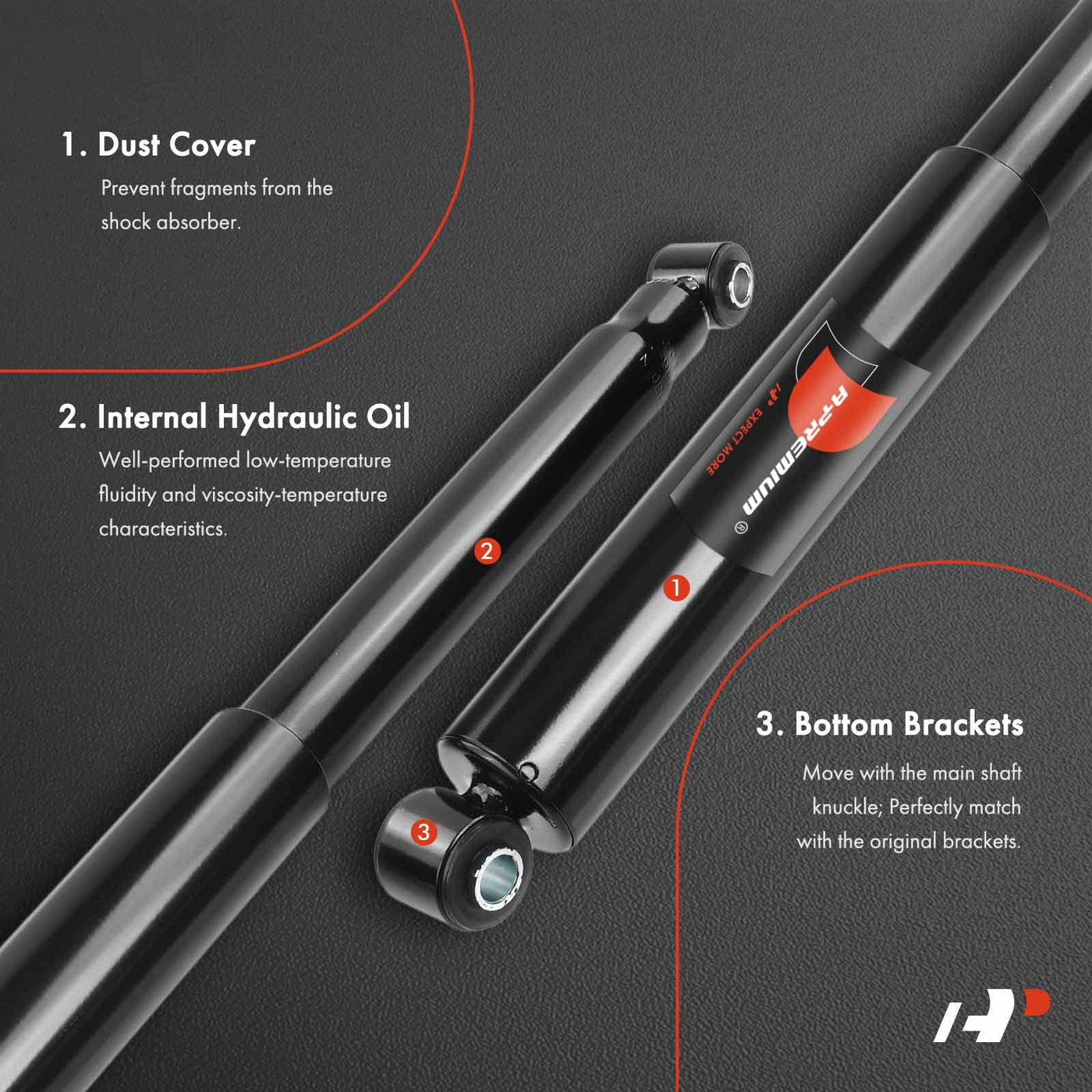 Q: What is the material used in the construction of these shock absorbers?A: The A-Premium Shock Absorbers are constructed from high-quality steel or aluminum, ensuring strength and durability for reliable performance under various driving conditions.