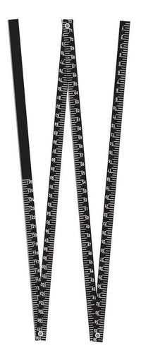 Q: What materials are used in the construction of this measuring stick?A: The measuring stick is constructed from high-quality hardwood, ensuring durability and longevity. It is also equipped with metal rivets for added strength, while the black paint and silver markings enhance visibility and ease of use.