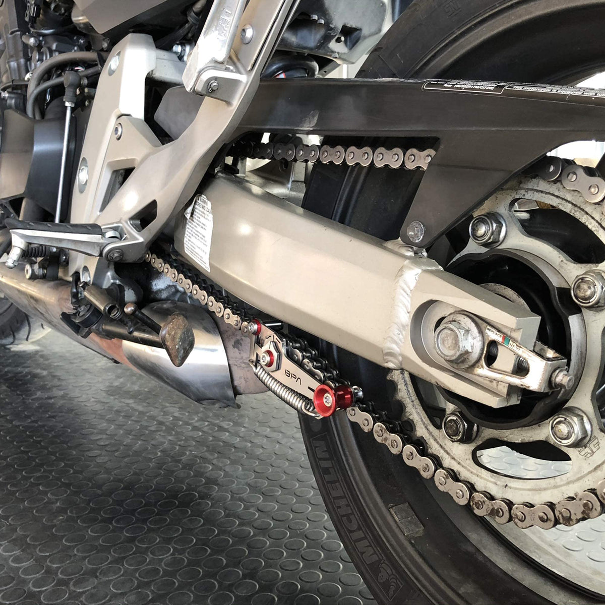 THE SOLUTION FOR PERFECTLY ADJUSTED CHAIN 24/7 [PATENT PENDING]: Once this dynamic comparator is calibrated for your motorcycle, it indicates in real time what the perfect slack of the chain should be. The easy to read indicators will let you know if the chain is too loose, OK or too tight. | NO MORE COMPLICATED MEASUREMENTS: If you have ever tried to adjust the tension of the chain manually, with all the measurements and readjustments the service handbooks suggest, you probably know how hard that can be! This tool is made for the comfort of the rider! Very precise chain adjustment in just two minutes, without even requiring all those repetitive, time consuming and complicated measurements with tape. You don't even get your hands dirty. | PERFECT FOR ANY MOTORCYCLE: Thoroughly designed for 3.5 years, the BPA-Racing Slack Setter Tool grants an easier, quicker and more precise adjustment of the slack for all types of motorcycles – Standard, Café Racer, Scrambler, Sport Bike, Sport Touring, Cruiser, Adventure, Enduro and Dual-Sport. | CHAIN TENSION MATTERS - SAFETY COMES FIRST: Incorrect chain tension can damage various components of your motorcycle and result in accidents. If the chain is tensioned too much, it causes wear on the sprockets while it prevents rear suspension from working properly. If the chain is too loose, it rattles and could jump off anytime. In both cases, dangerous accidents could be caused. With this innovative slack setter you can safely enjoy all your rides to the maximum! | THE #1 TOOL OF THE MARKET - “the best or nothing”: Your safety, comfort and taking the best care of your precious motorcycle could really depend on something so simple like your chain’s slack. And this innovative, one of its kind, buy-once, use-for-a-lifetime BPA chain adjuster tool, can really make all the difference. One unbreakable tool for an always precise chain slack. Sounds like a fair deal!