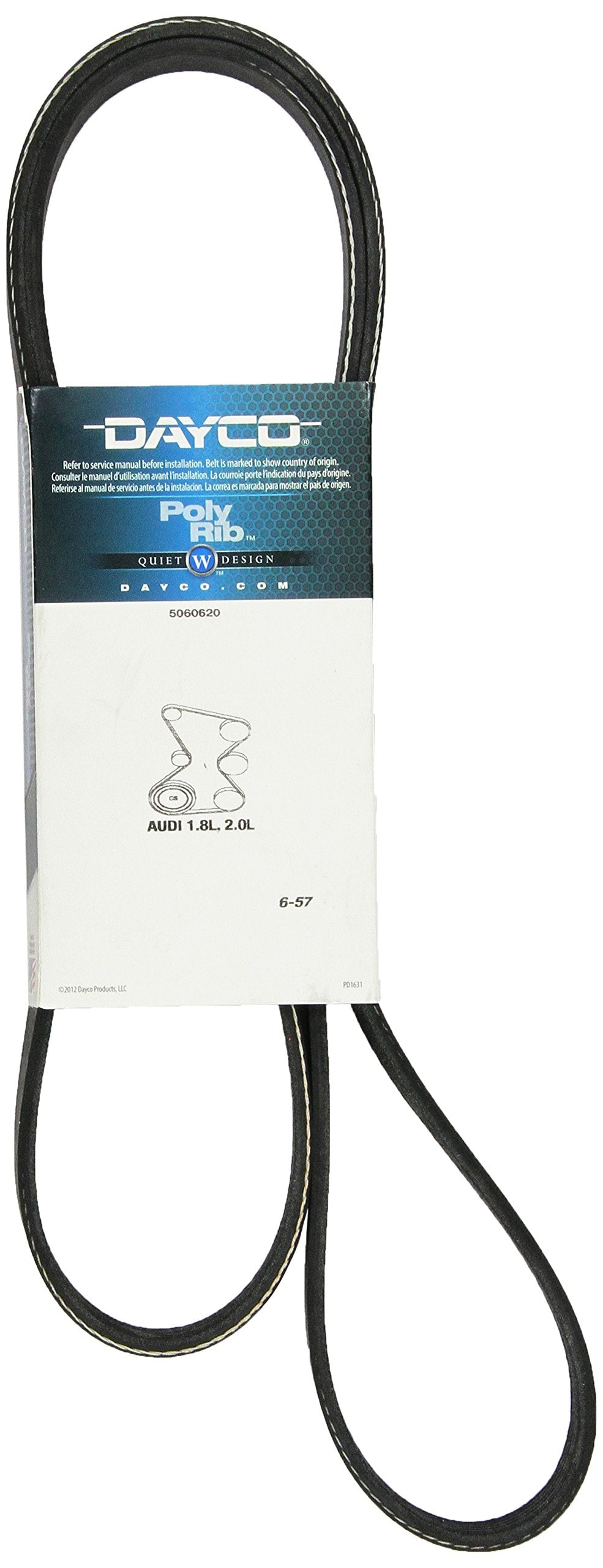 Q: What maintenance is required for the Dayco 5060620 Serpentine Belt?A: Regular inspection for signs of wear and proper tension are recommended for the Dayco serpentine belt to ensure it functions effectively and lasts longer.