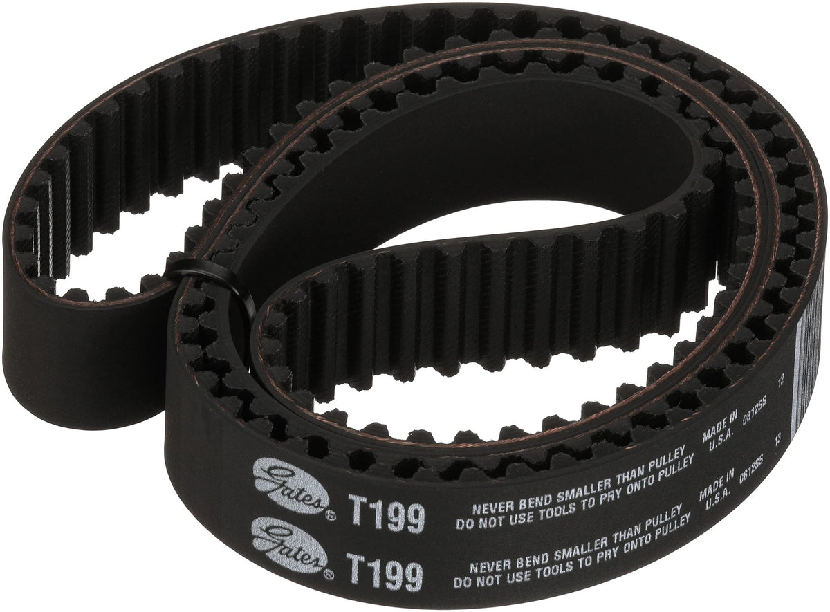 Q: What materials are used in the Gates T199 Timing Belt, and how does this affect its performance?A: The Gates T199 Timing Belt is made from durable rubber compounds designed to withstand heat and stress, contributing to its longevity and reliable performance in maintaining engine timing.