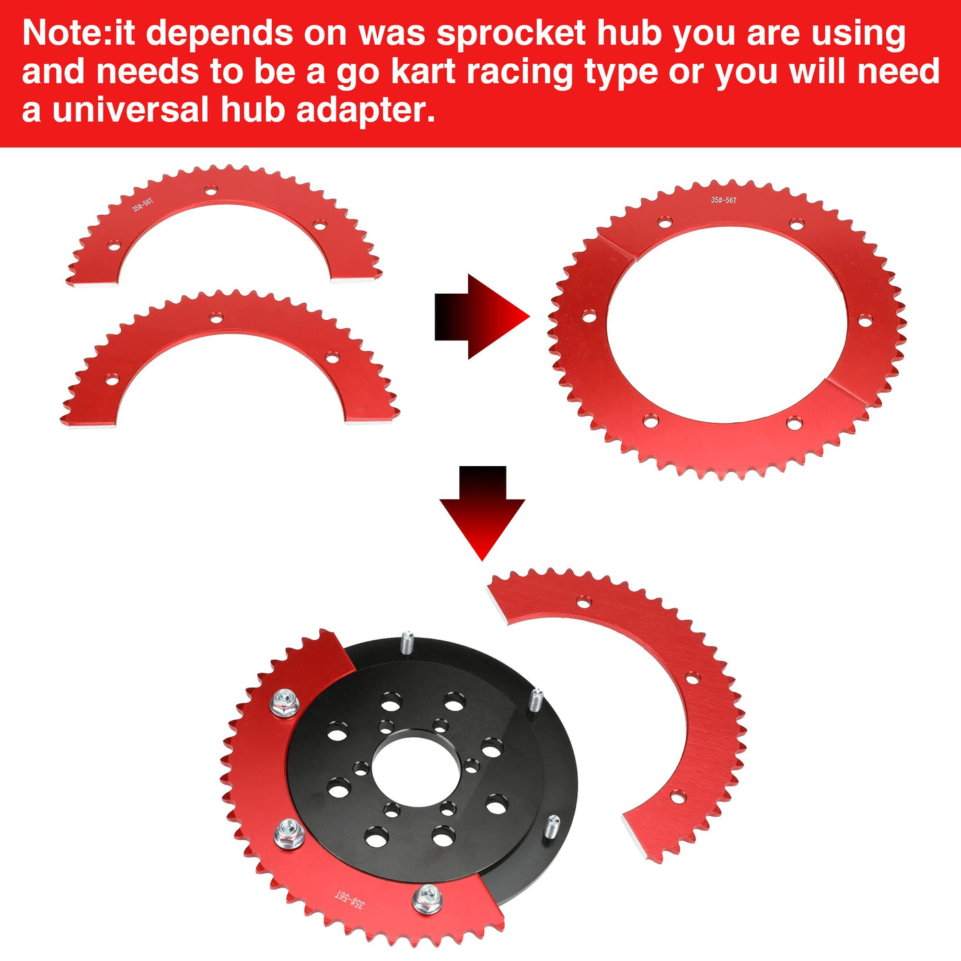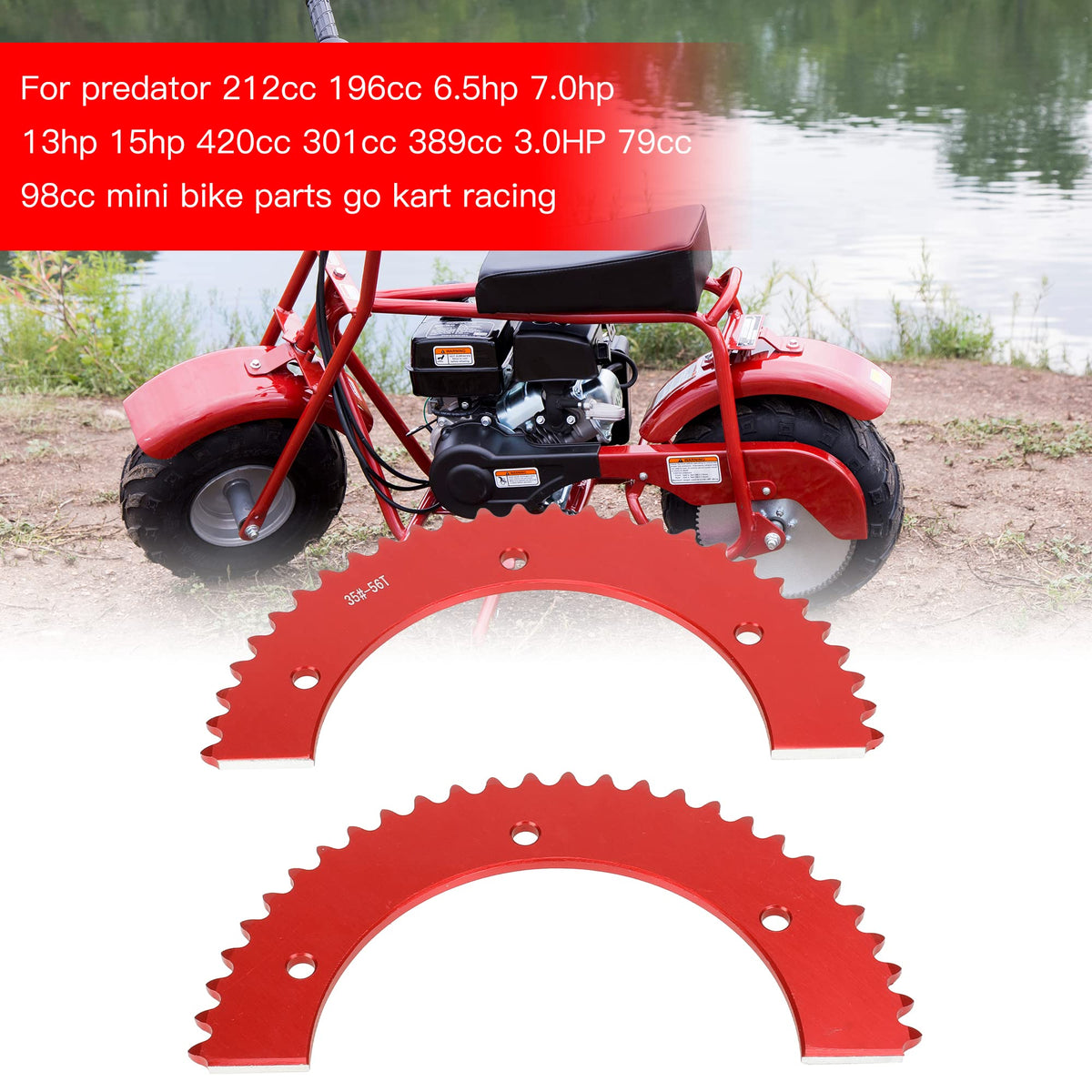 Grehua #35 Chain 56 Tooth Split Sprocket Fit For 212Cc 196Cc 6.5Hp 7.0Hp Coleman Ct200U Ct200U-Ex Bt200X Ct100U Trailmaster Mb200 Megamoto B212 Baja Motovox Doodlebug Go Kart Cart Mini Bike Motorcycle. Feature: 1.The Split Sprocket Is Made Of High Quality Aluminum Alloy Material For Lightweight,Durable And Long Service Life.Faster Weight Reduction Loss And Greater Versatility. 2.The Precise Cutter Tooth Design On Split Sprocket Reduces Friction At High Speeds,Resulting In Smooth Chain Running And High Output. Fit For The Most Mini Bike Or Go Kart Racing. Please Note:It Depends On Was Sprocket Hub You Are Using And Needs To Be A Go Kart Racing Type Or You Will Need A Universal Hub Adapter. Fitment: Fit For 212Cc 196Cc 6.5Hp 7.0Hp Go Kart Mini Bike. Coleman Ct200U Ct200U-Ex Bt200X Ct100U Cc100X Trailmaster Mb200 Mini Bike Megamoto B212 Mini Bike Motovox Mbx10, Mbx11 Mini Bike 80Cc 105Cc Monster Moto Mini Bike Baja Doodlebug Db30 Mini Bike Package Included: 1 X Red Split Sprocket(#35 Chain 56T) -Please Check As Much As Possible To The Item Picture, Model And Size Carefully Before Purchasing.