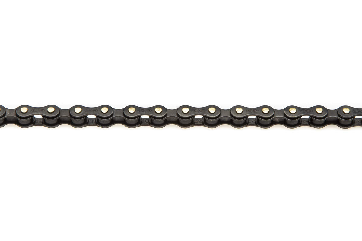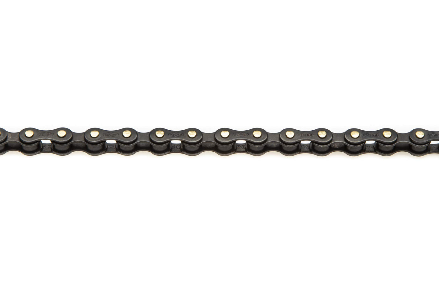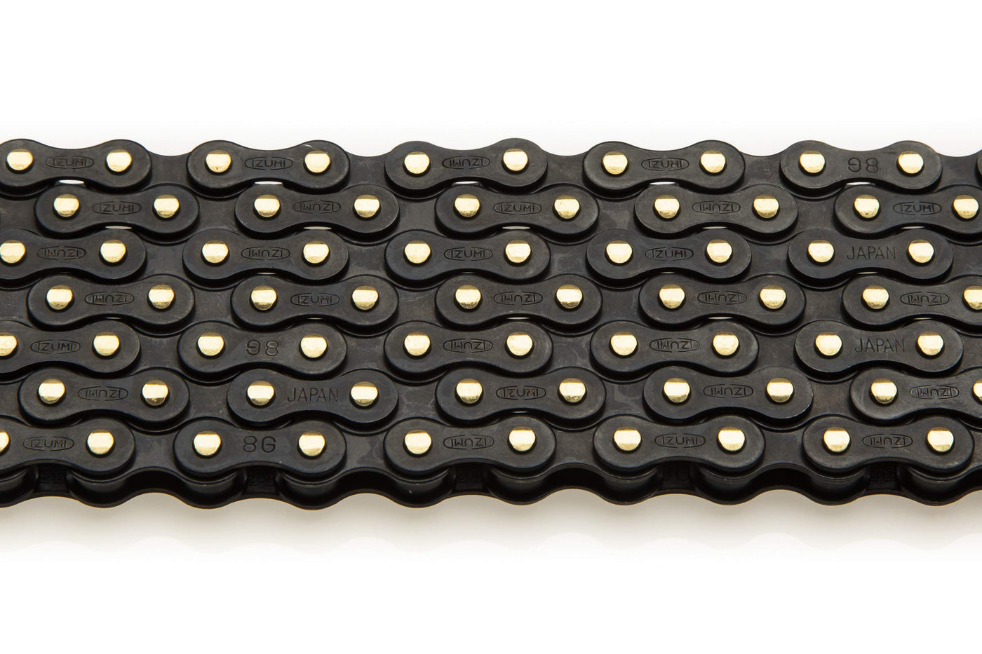 As used by the worlds best track And keirin racers, Izumi chains are made in Japan and are the mark of absolute toughness and quality for fixie track And Urban bikes. the Japanese njs approved super-tough is the most formidable chain, built for a purpose It looks The Part too, With a stunning gold And black finish. izumi’s standard 1/2x 1/8 chains are available in black, silver and gold at a more affordable price For a funky and functional upgrade to you your urban warrior or track speedster. Based in OSAKA, Japan, Izumi are long established as one of the most successful Japanese bicycle component manufacturers. Izumi have been making bicycle chains for discerning trackies, fixies and fashionistas since 1916. Their uncompromising attention to detail ensures quality, strength and Flawless performance.