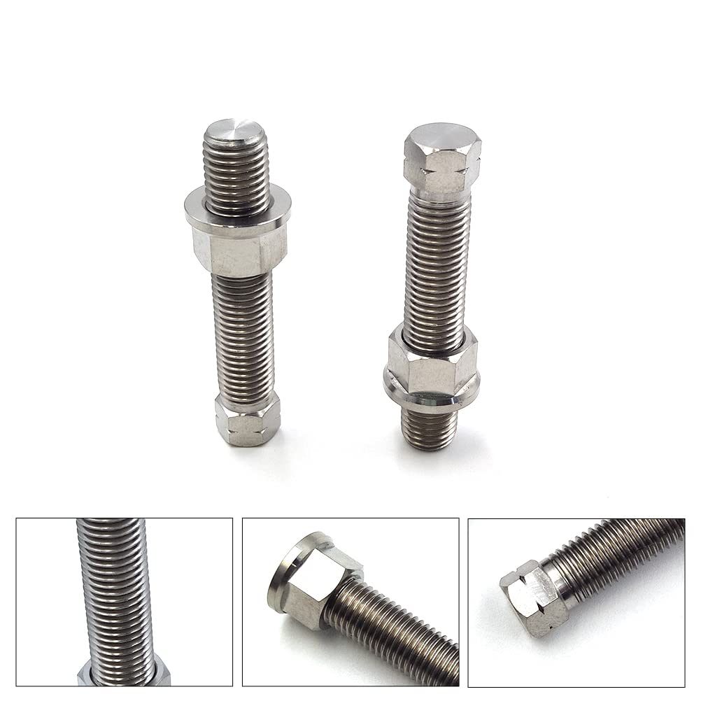 Q: What materials are used in the PROOTOM Motorcycle Chain Adjuster Bolts?A: The PROOTOM Motorcycle Chain Adjuster Bolts are made from high-quality titanium alloy, which offers excellent strength, lightweight properties, and durability, making them a perfect choice for motocross and dirt bikes.