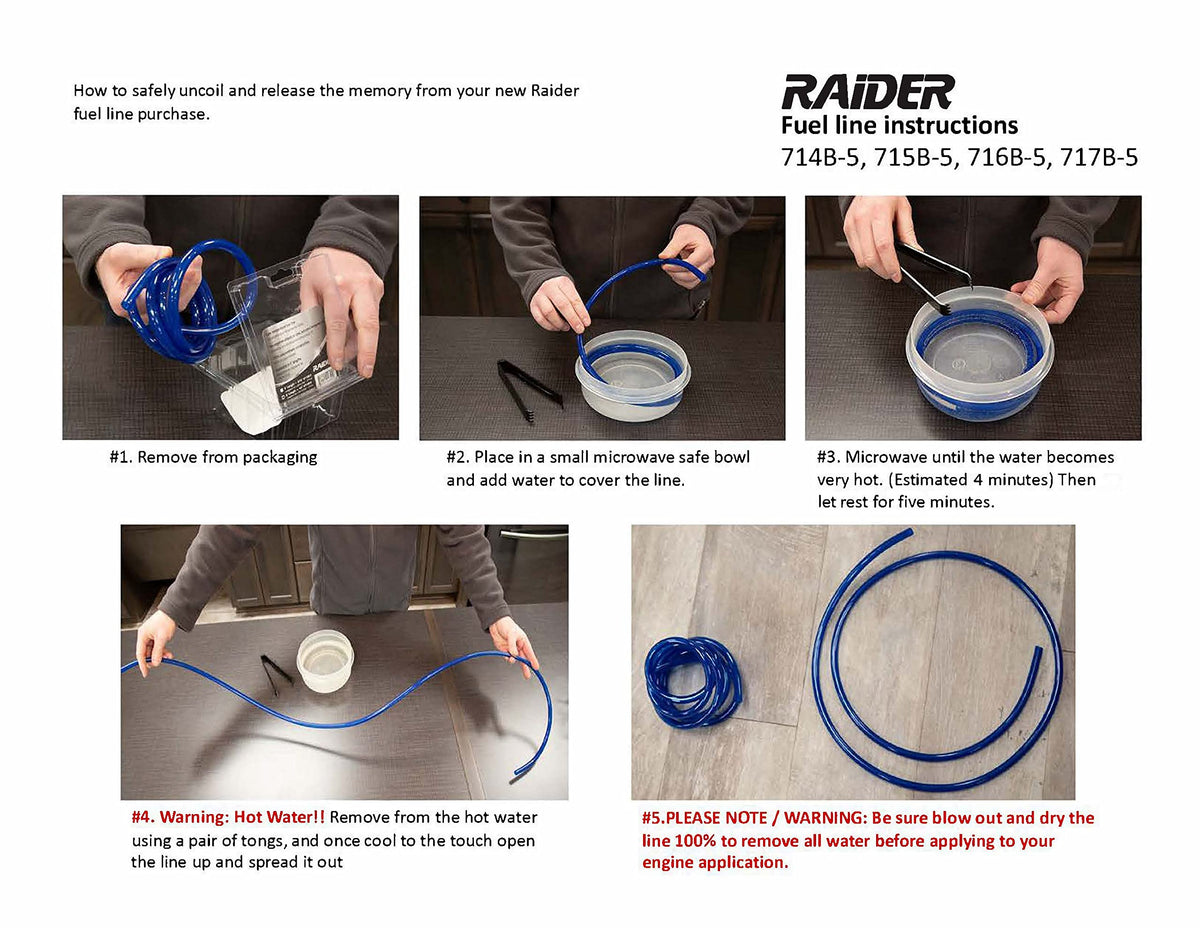 When you seek a durable, long-lasting line-up of fuel lines and shut-off valves, Raider is your No. 1 choice. Our high-quality, 100-percent polyurethane fuel lines are not affected by sub-zero temperatures. Available in todays top-selling diameters, our lines are packaged in 5 foot sections to allow you to update your machine with ease. Rounding out the assortment is our fuel filter. When you need reliable parts and accessories for your fuel system, count on Raider.