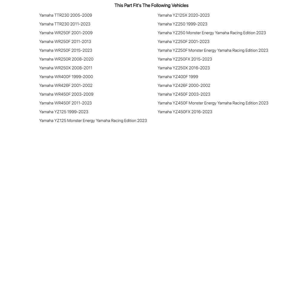 Special Notes:You Must Use A Tapered Style Sprocket Bolt (Part #1096010001) For This Sprocket To Work On A Yamaha Ttr230 And Wr250R. -Fits Oem Bolt Mounts -Multiple Colors Available
