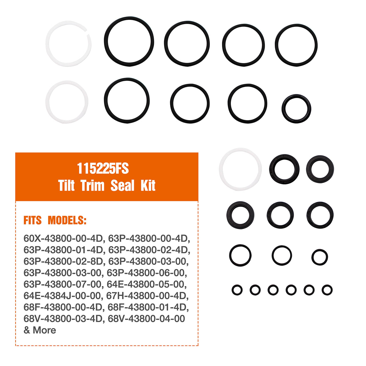Q: What Yamaha boat models are compatible with the ShineUs Tilt Trim Seal Kit?A: The ShineUs Tilt Trim Seal Kit is compatible with Yamaha Boat Power Trim Tilt Units 115HP, 150HP, 175HP, 200HP, and some 225HP and 250HP models from 1997 and up. Specific model numbers include 60X-43800-00-4D, 63P-43800-00-4D, and many others.