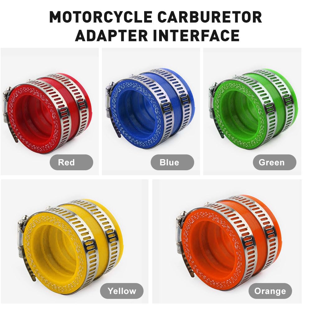 Q: What carburetor brands does this adapter fit?A: This rubber adapter is designed to fit a range of carburetor brands including MIKUNI, KEIHIN, ZSDTRP, OKO, KOSO, and PWK, specifically for sizes 21mm, 24mm, 26mm, 28mm, and 30mm, as well as PE 28mm and 30mm carburetors.