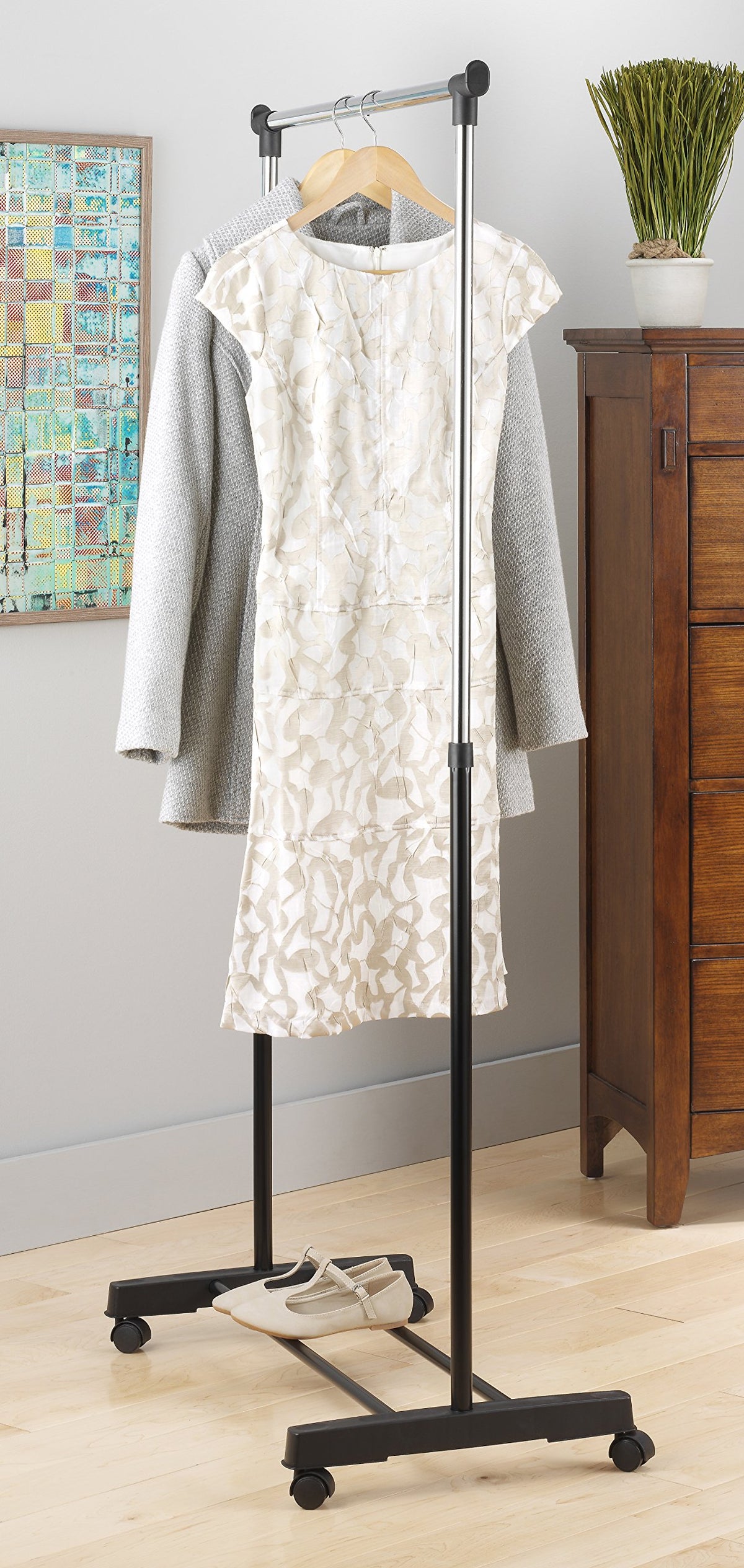 Whitmor Adjustable Garment Rack Rolling Clothes Organizer, 18.25''D X 33''W X 66''H, Black & Chrome