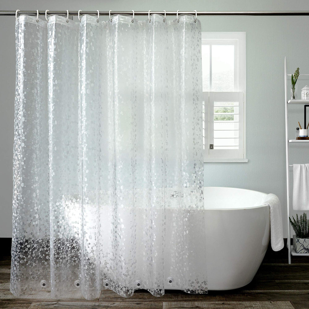 Basic Information: Pattern theme: Cobblestone pattern Material: EVA Functions: Water repellent Weight features: Heavy duty Product size: 48x72 inch Color: Semi-transparent Care instructions: Wipe clean with a damp cloth. We recommend opening shower curtain to dry after each use. Package: Shower curtain with 8 hooks