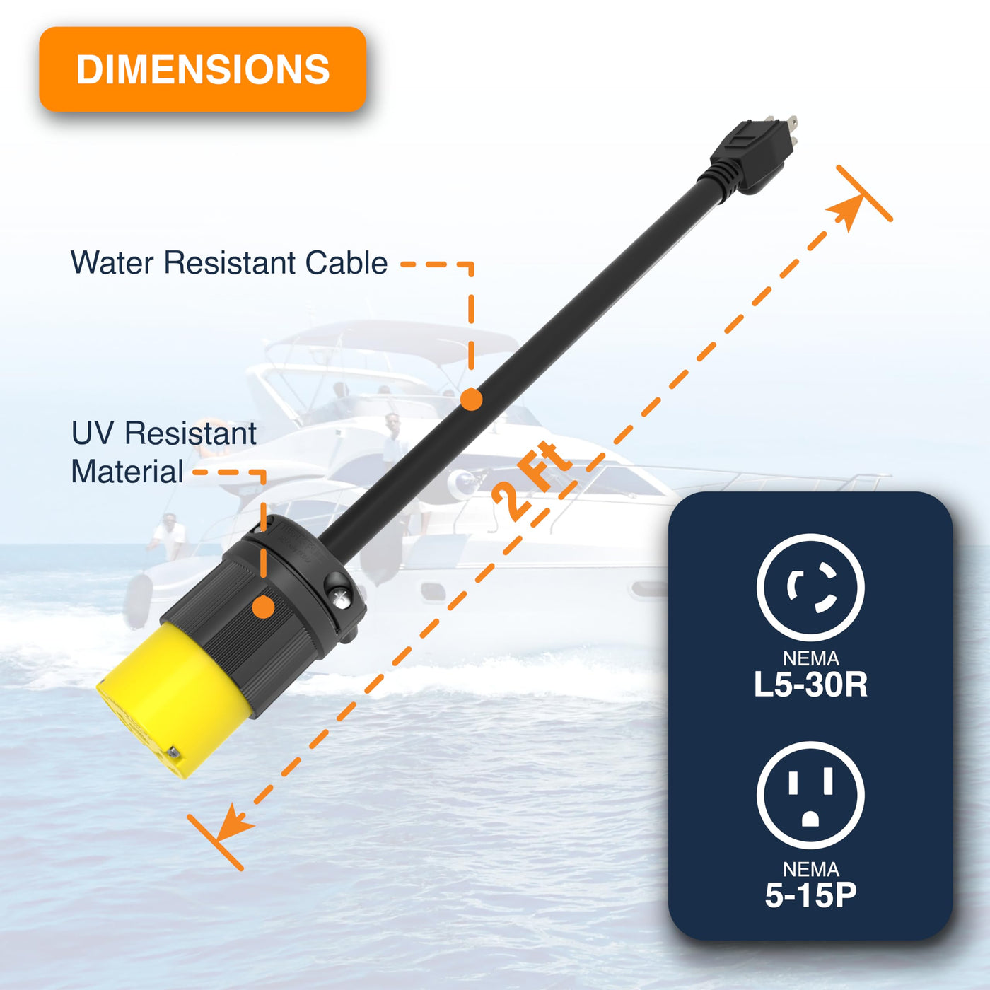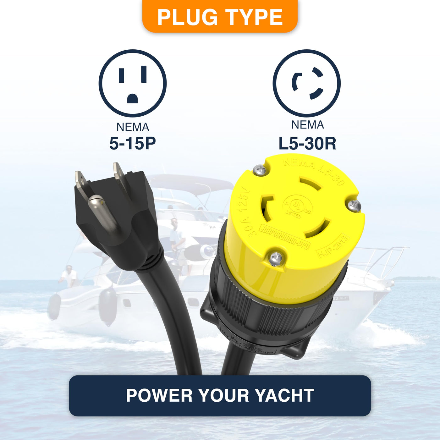 The Journeyman-Pro SeriesIndustrial Grade Locking Connector Features:? EXTRA TOUGH Nylon Construction that WON'T CRACK in high abuse applications. ? WORKS PERFECTLY for use with supplying power to your Marine/Boat or RV or Camper/Travel Trailer. ? 15 Amp 125 AC Volts NEMA 5-15P Male Plug Conversion to 30 Amp 125 Volt TT-30R