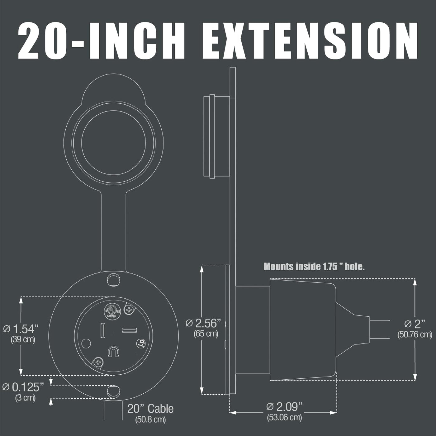 20 Amp Ac Power Inlet Port Charger Plug, By Journeyman-Pro 110-125 Volt Socket, Waterproof Electrical Outlet Receptacle, 20-Inch Integrated Outdoor Rv/Shore Extension Cord 5-20R(Gcp2 Black 20A)