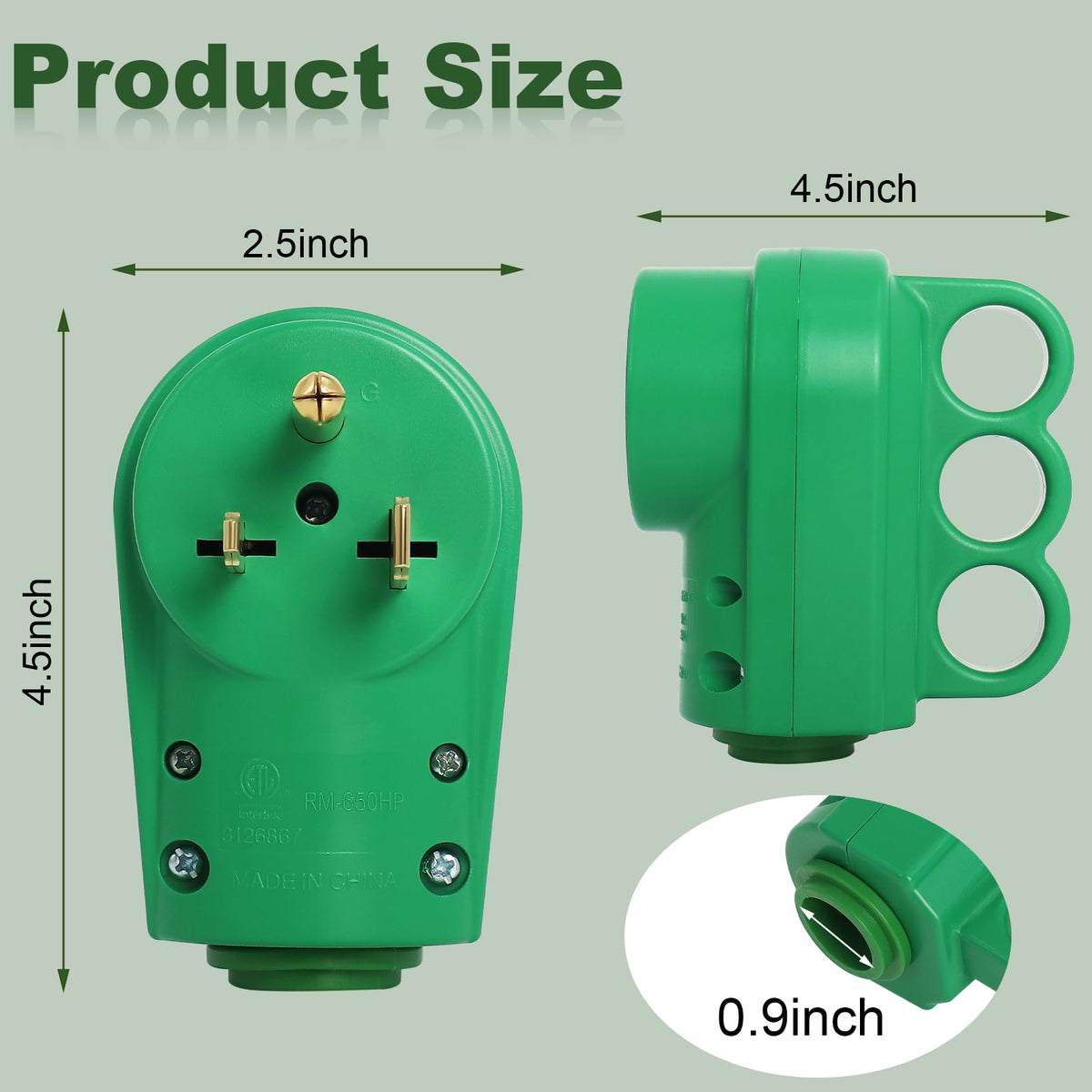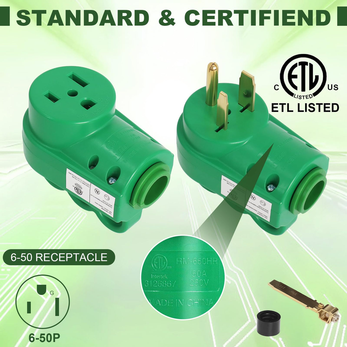 50 Amp Female 6-50P Plug & 6-50R Receptacle Set for RV, EV Charger, Welder Machine, (Green) 3 Prong 125/250V Heavy-Duty Electric