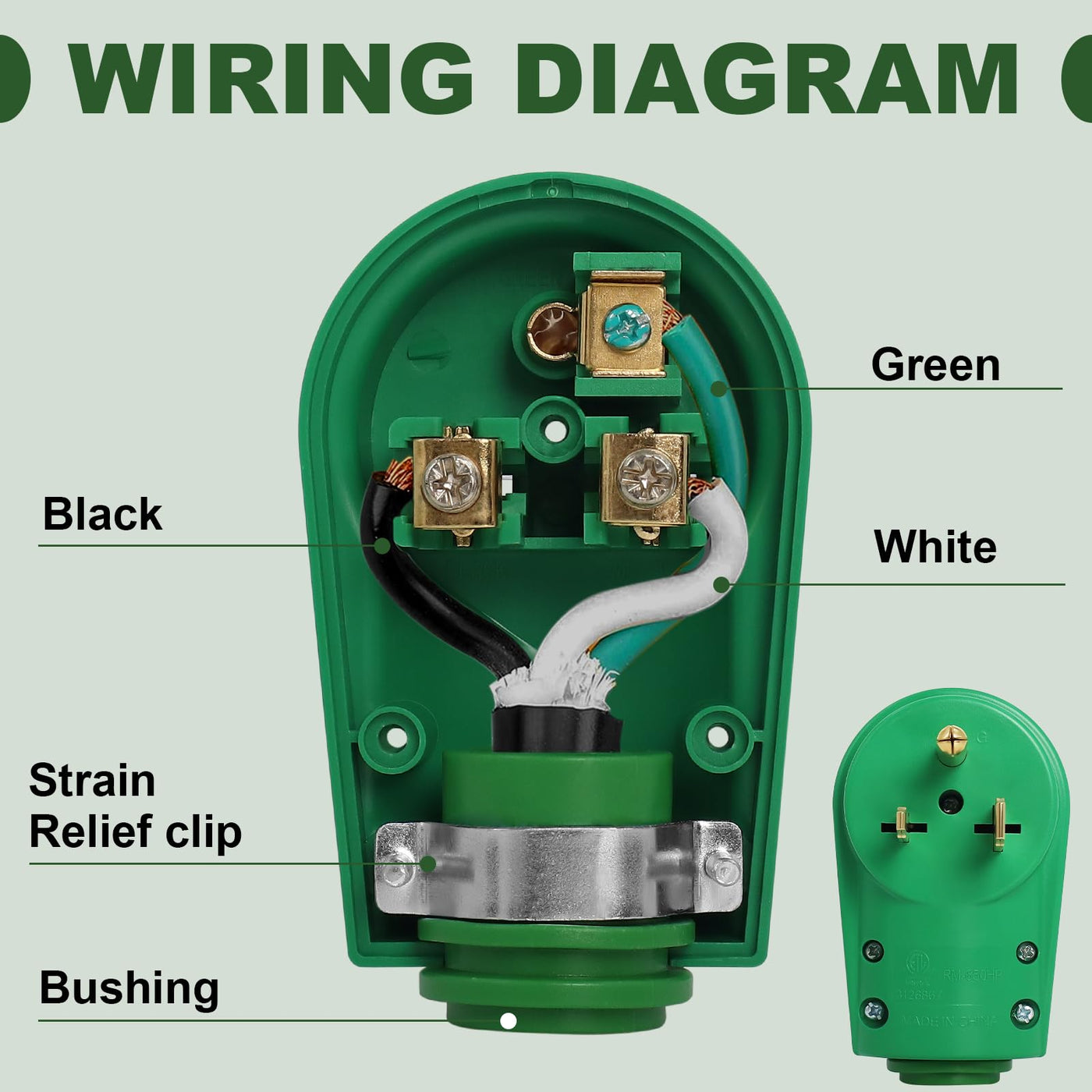 Secure & Reliable Connection - Made with high-quality materials for reliable power transfer, perfect for replacing old or worn out receptacles on 6 AWG/3C + 8 AWG/1C RV extension cords , EV chargers, welders, and industrial equipment | Durable & Heat-Resistant Construction - Features robust thermoplastic housing and brass contacts for superior conductivity, resisting corrosion, Unique design, you can use these all over the farm for different machinery and applications. | Secure Fit - Standard 6-50P (male) and 6-50R (female) configurations allow for quick wiring and a snug, vibration-proof connection-ideal for mobile applications | Weather-Resistant Design - Engineered to withstand outdoor conditions, making it safe for use at campsites, RV parks, or home generator setups | Easy Installation - Standard screw terminal design allows for quick and secure wiring, saving time on setup and maintenance