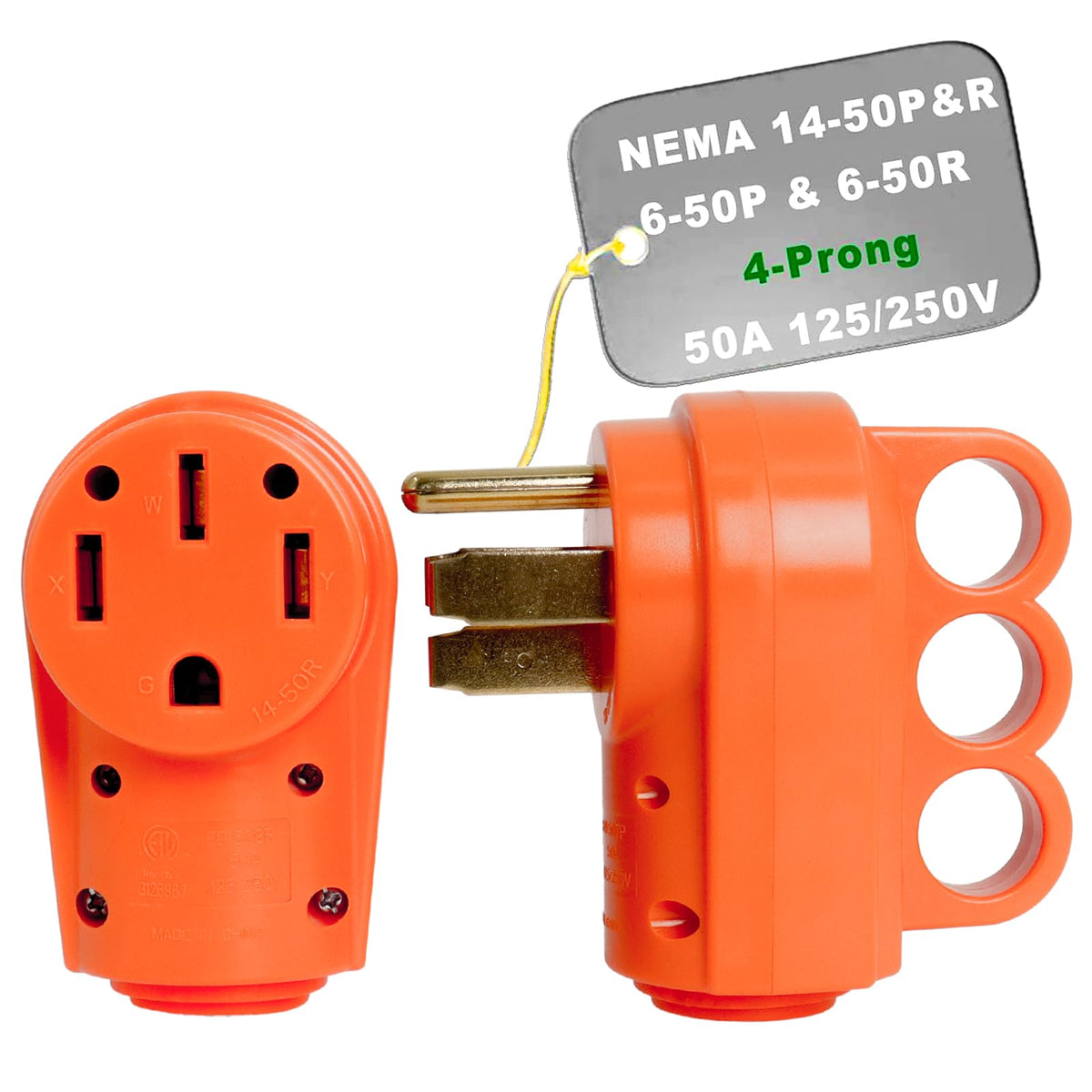 50 Amp Male And Female Rv Plug Set 14-50P/50R Rv Power Cord Male/Female Replacement Socket Plug Combo Kit 125/250V For 6/3 + 8/1