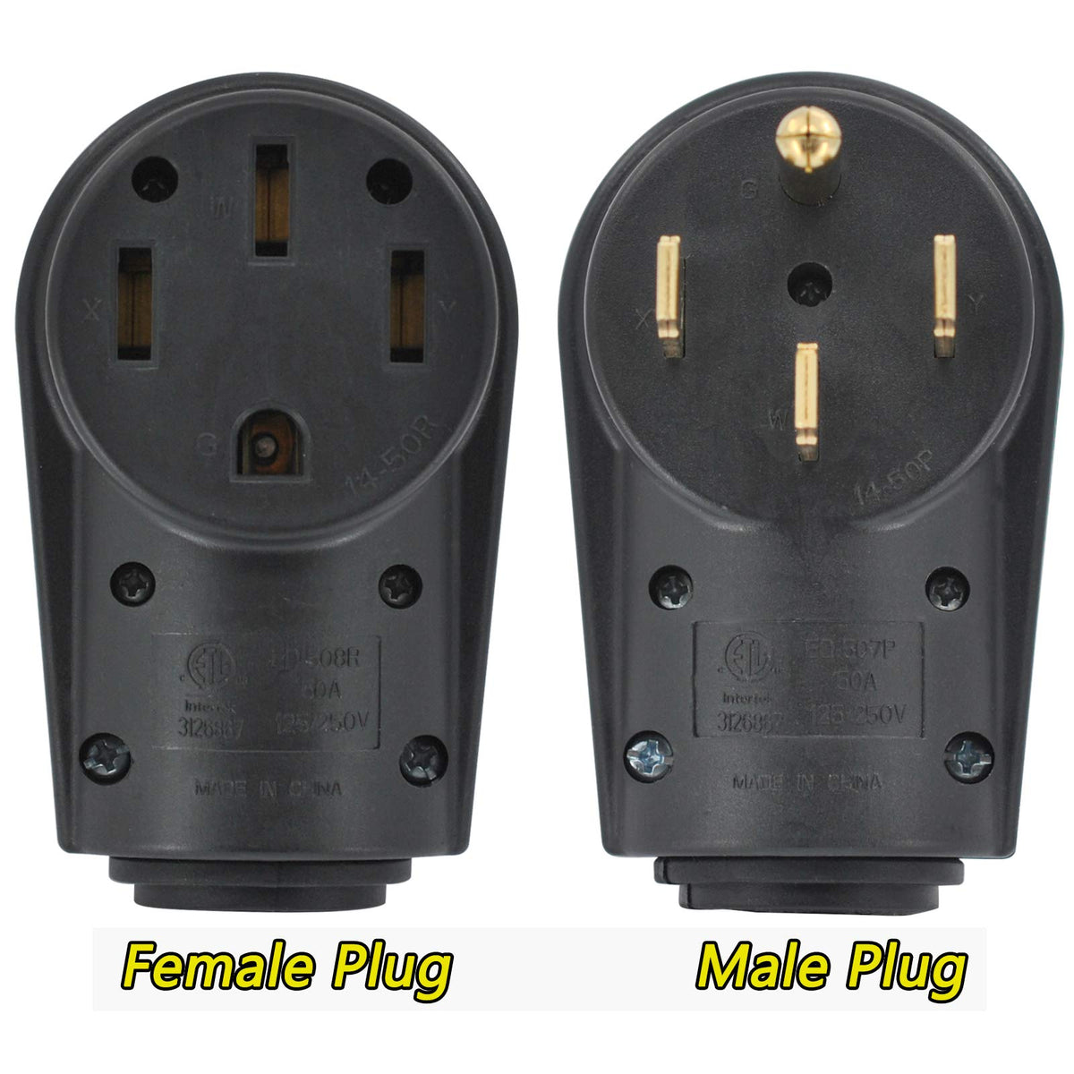 50 Amp Rv Male And Female Plug Kit With 14-50P And 14-50R Universal Plug And Receptacle, 125V/250V Heavy-Duty Electrical Plug Fo