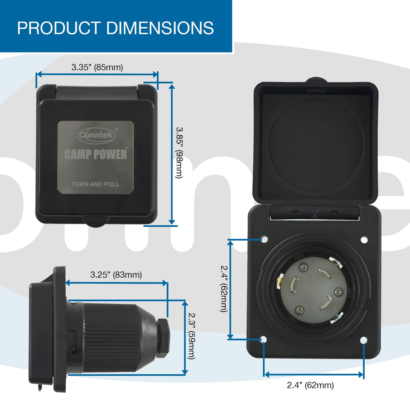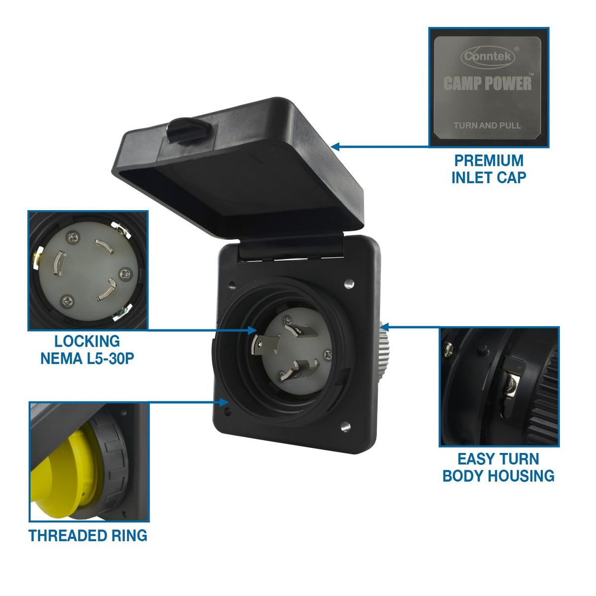 NEMA L5-30P , 30 Amp 125 Volt Power Inlet, ideal for replacing or upgrading worn electric power connections on boats, RVs, or trailers. Ensures a reliable and secure power connection for your outdoor adventures.
