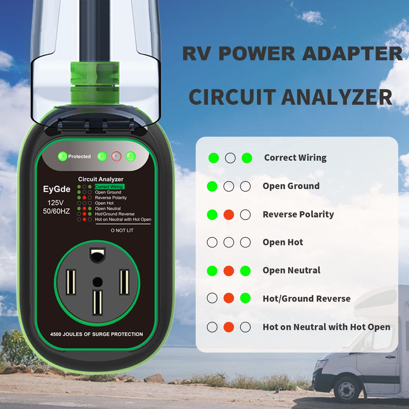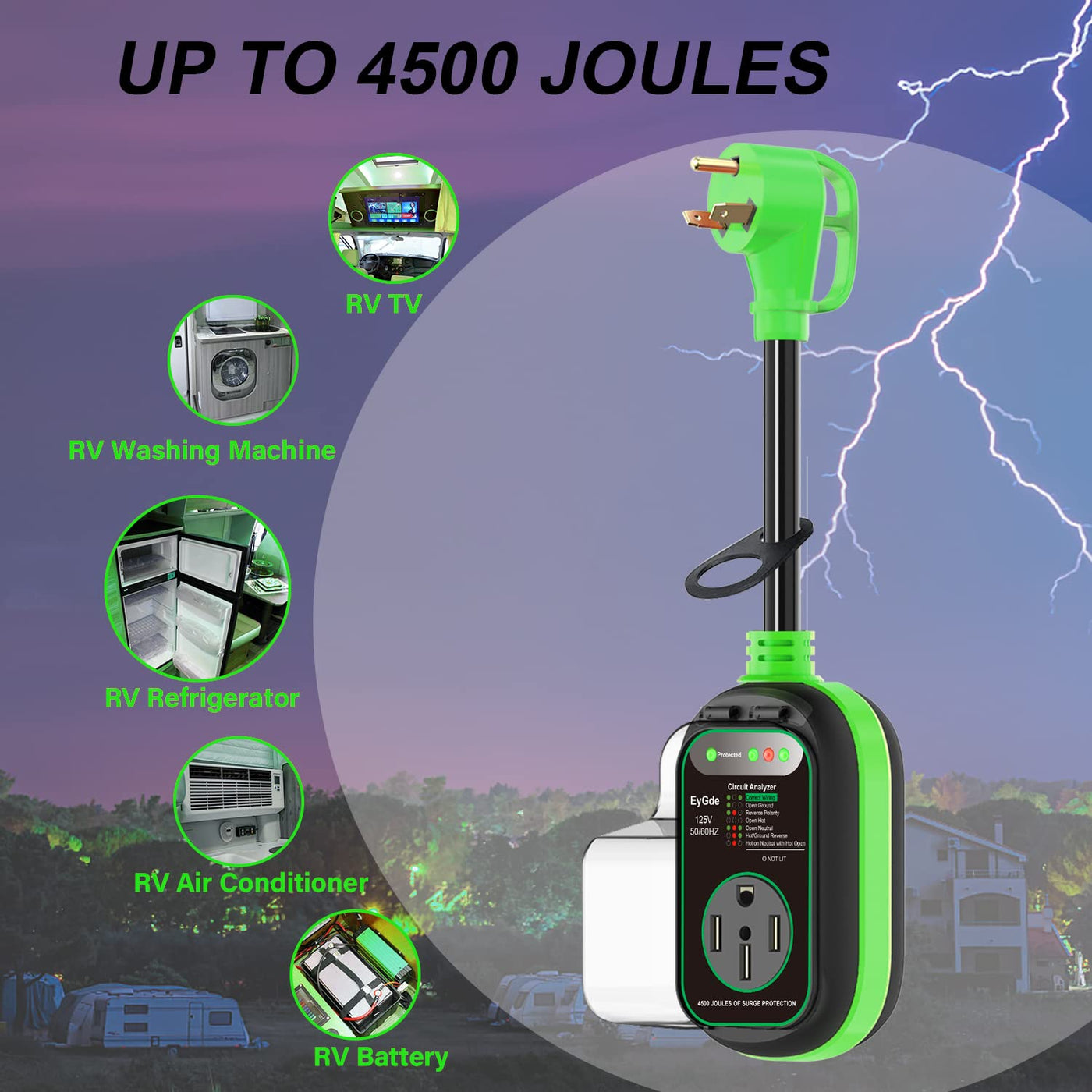 Eygde 30 Amp To 50 Amp Rv Adapter With Surge Protector, Patented 4500J 30 Amp Male To 50 Amp Rv Adapter Plug, Rv Circuit Analyze