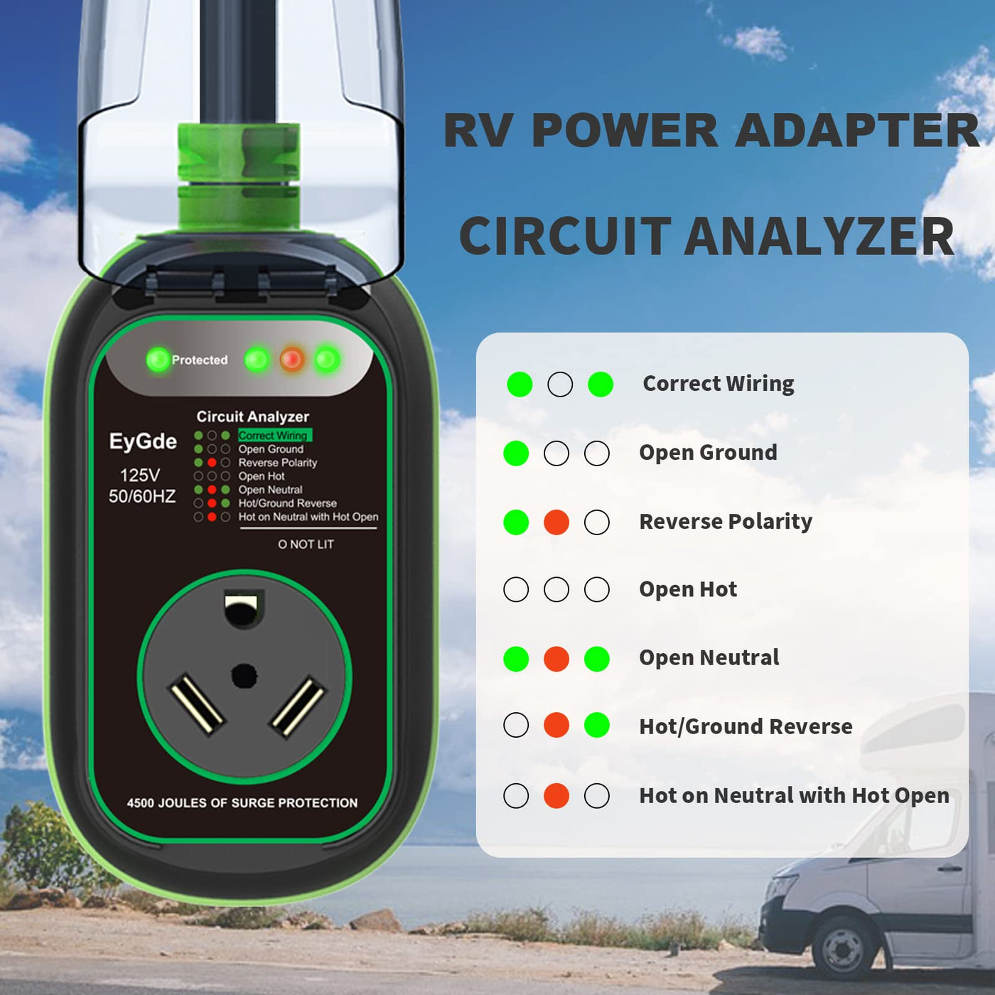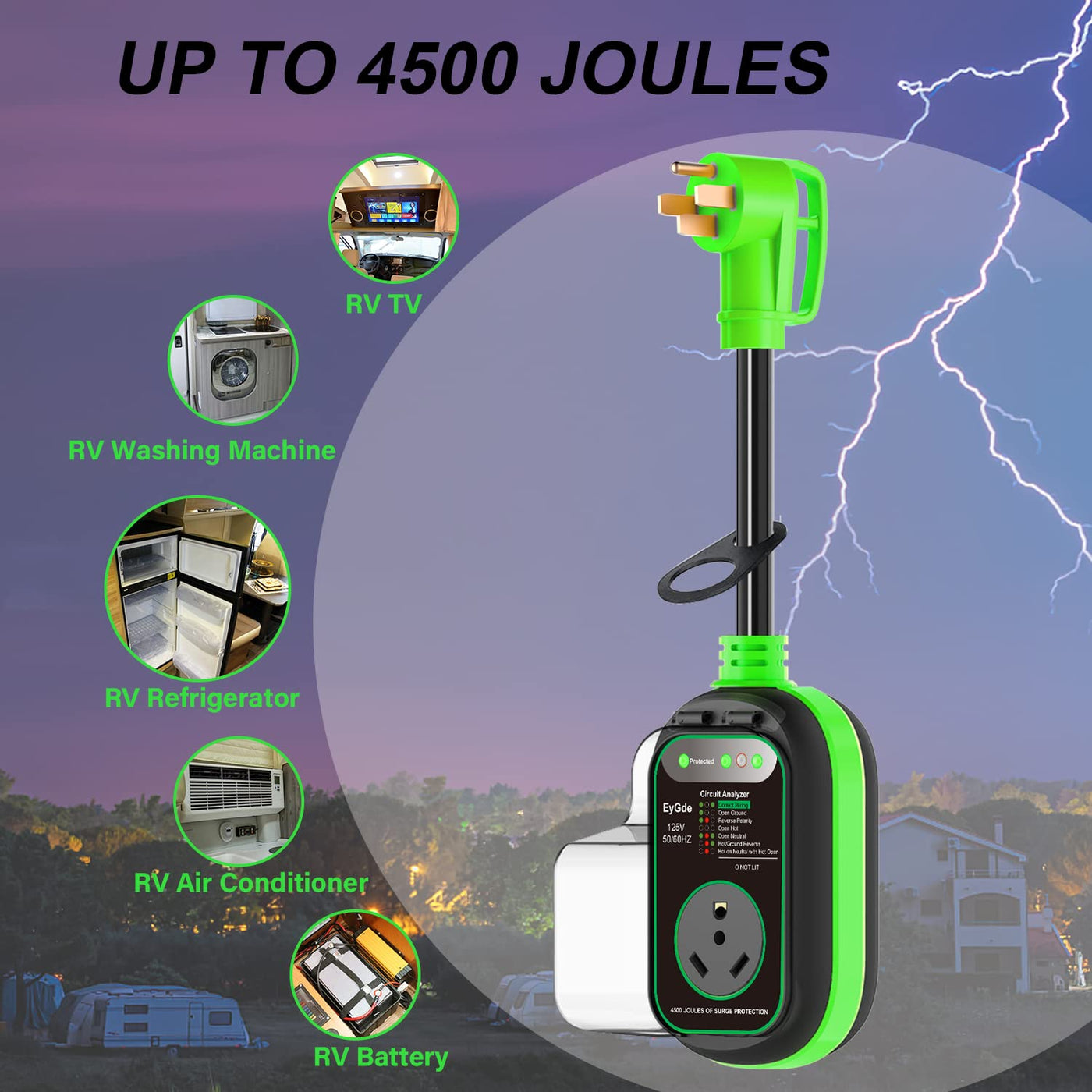 Eygde 50 Amp To 30 Amp Rv Adapter With Surge Protector, Patented 4500J 50 Amp Male To 30 Amp Rv Adapter Plug, Rv Circuit Analyze
