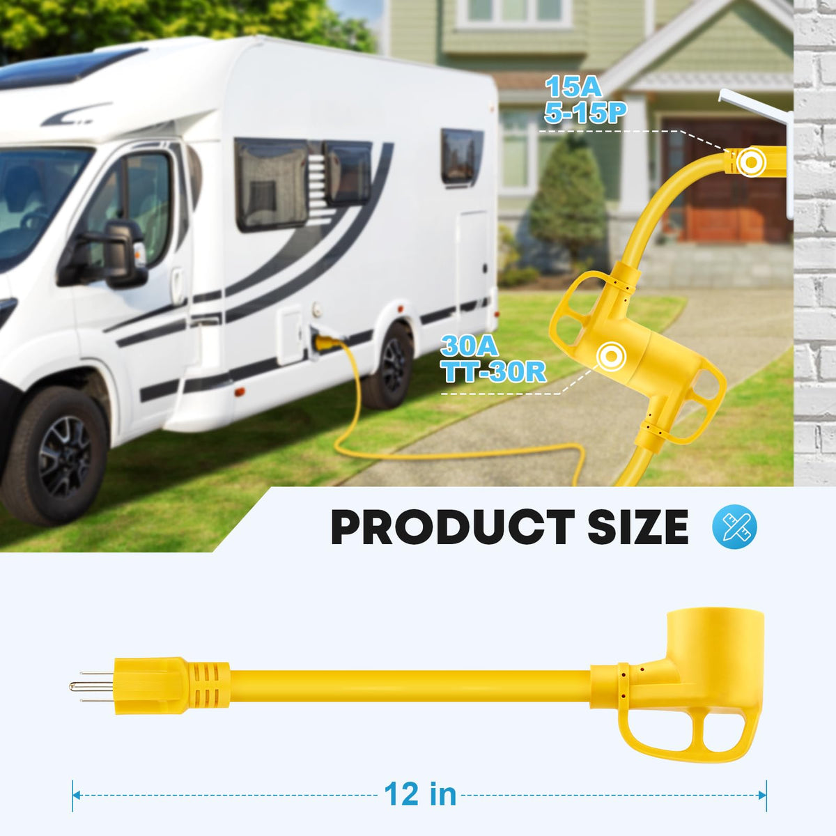 Kohree 30 Amp to 15 Amp 110V RV Adapter Plug, 15A Male to 30A Female RV Power Adapter Cord 12 Inch, NEMA 5-15P to NEMA TT-30R RV Dogbone Electrical Adapter Cord